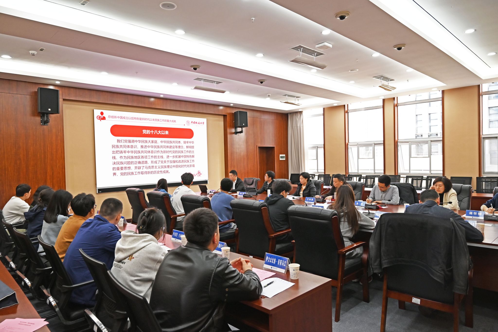 王林清领学习近平总书记在《求是》杂志发表的重要文章《铸牢中华民族共同体意识 推进新时代党的民族工作高质量发展》主要精神,并从“总结新中国成立以后特别是新时代以来民族工作的重大成就”“把铸牢中华民族共同体意识作为新时代党的民族工作和民族地区各项工作的主线”“如何铸牢中华民族共同体意识”三个方面作了学习分享。与会师生交流了学习习近平总书记关于民族工作系列重要讲话和重要文章精神的体会。