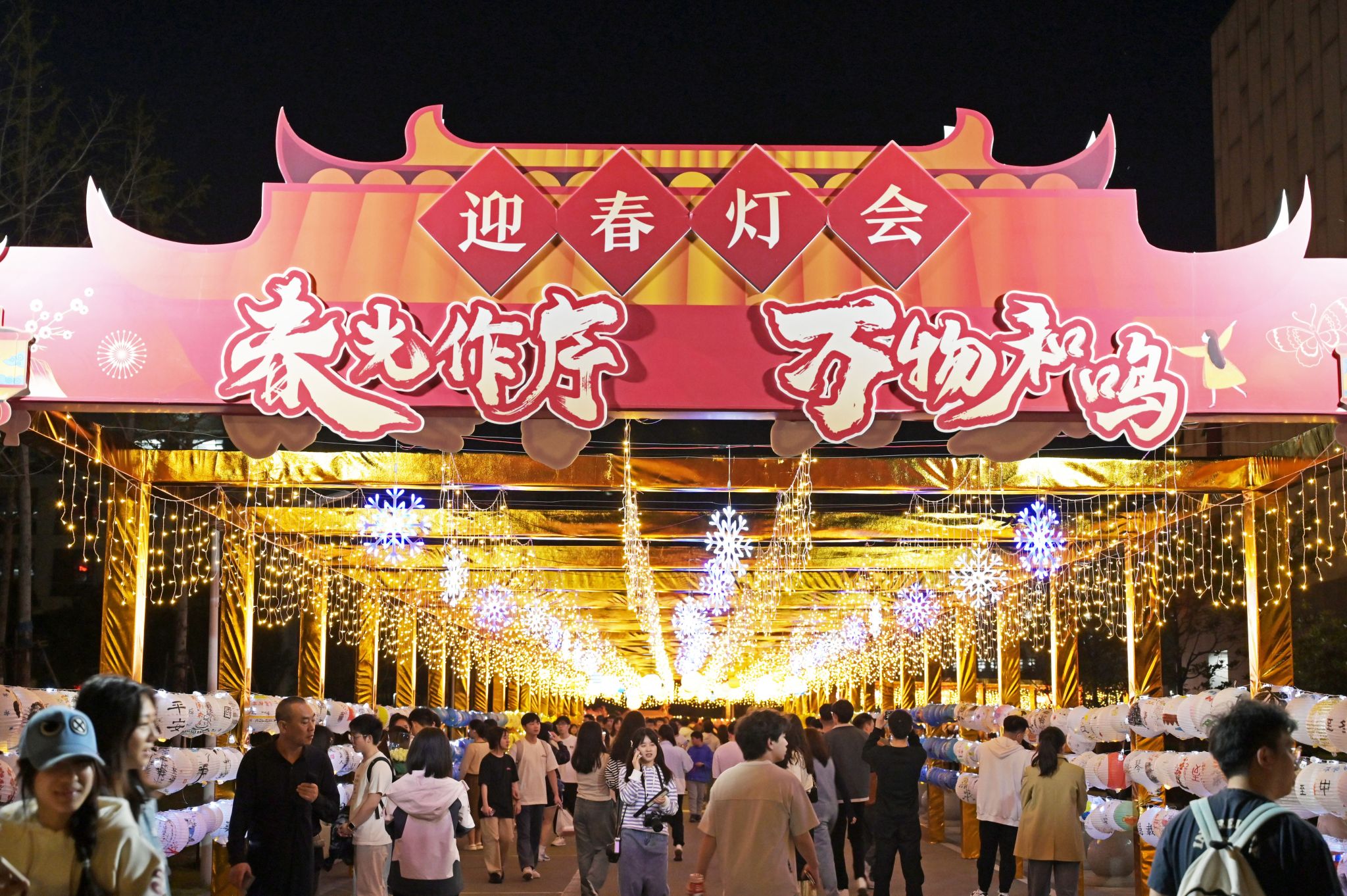 百花绽放,春和景明。晚上7点,露天剧场座无虚席,音乐秀场和主题演出依次上演。悠悠国风歌曲,诉说着对春日的眷恋;舞蹈、汉服秀、国乐演奏、诗词吟诵……各类表演如繁花竞艳,将传统文化之美与春日之梦绘成一幅流动的画卷。