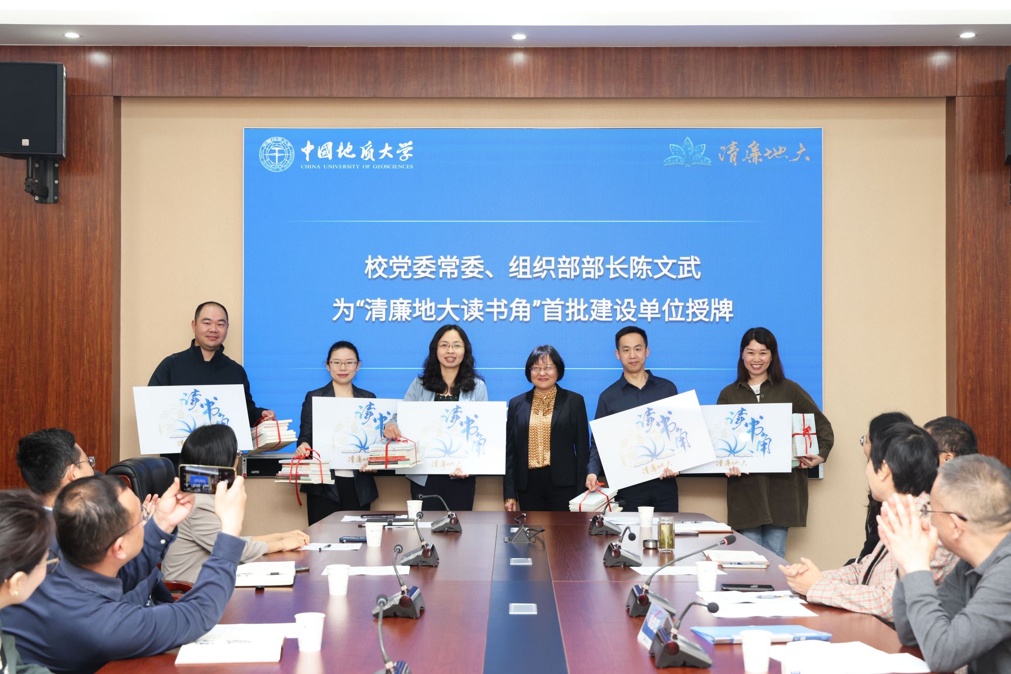 陈文武为清廉地大读书角首批建设单位授牌、赠书。