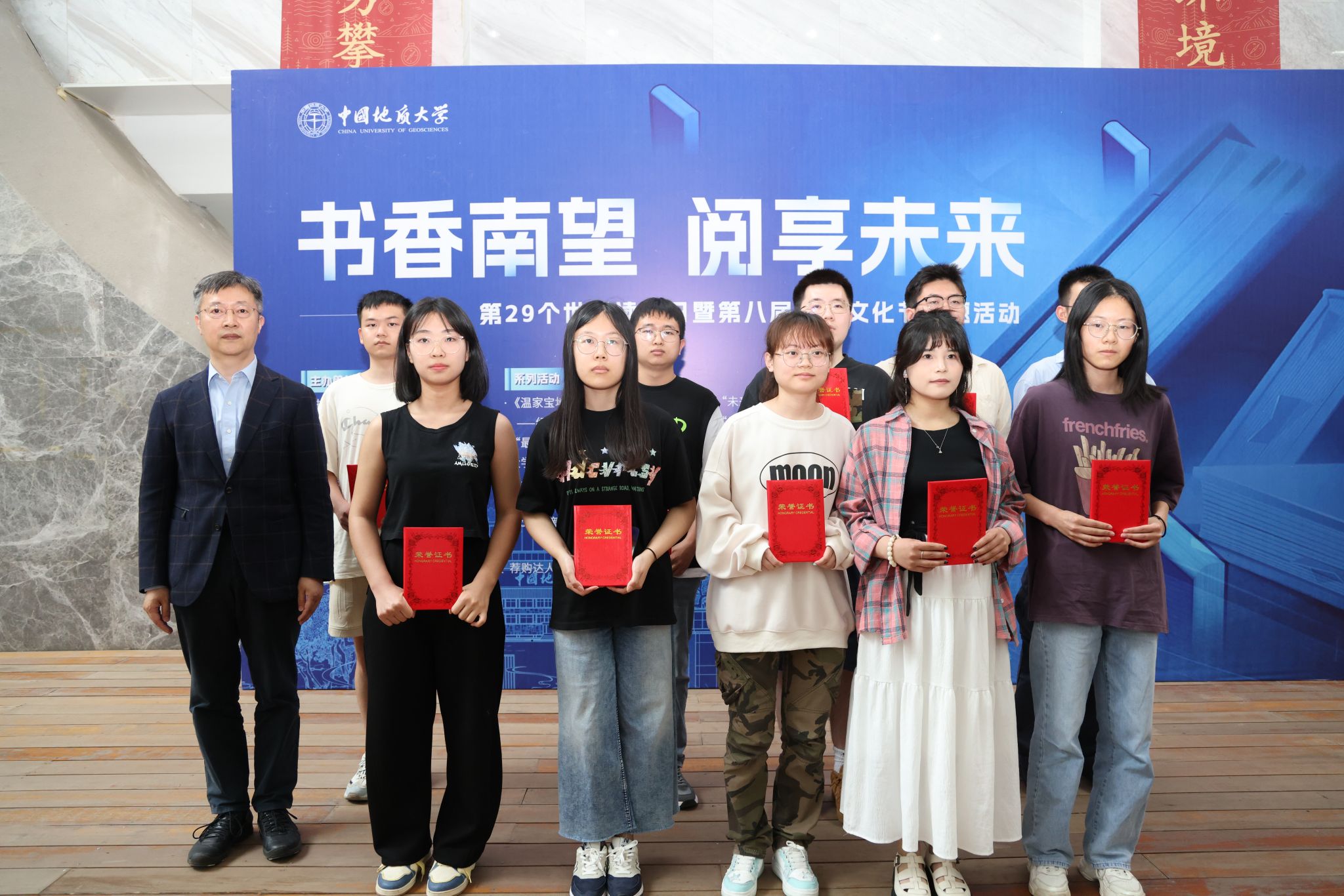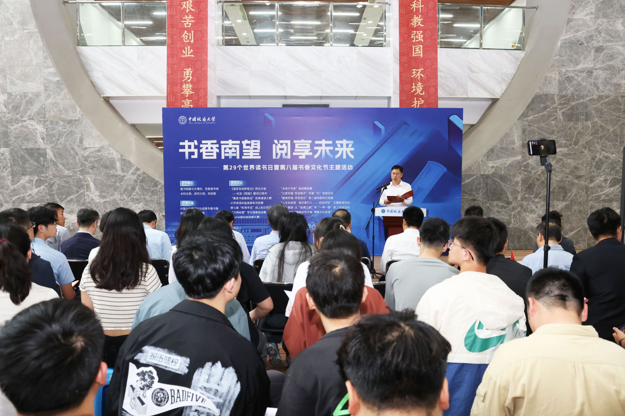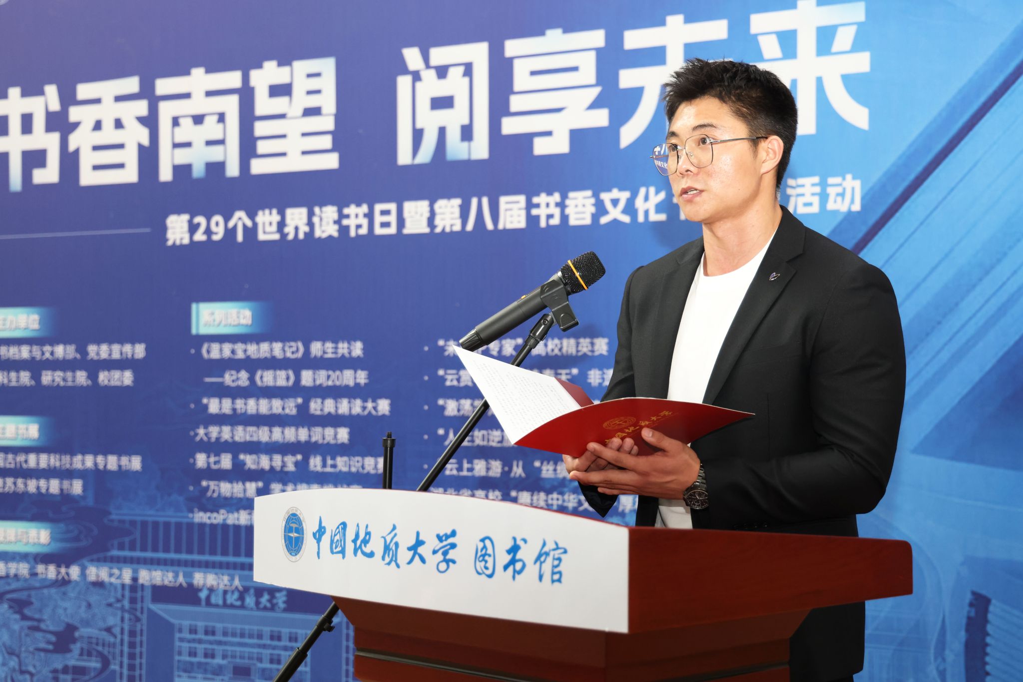 王甫致辞。他表示,开启地大第八届书香文化节是场馆育人品牌活动的进一步拓展提升。学校一直积极倡导全民阅读,全力推动书香校园建设,始终把书香地大建设作为文化建设的重要举措,把文化传承创新作为“双一流”建设的重要支撑。他希望同学们以参与书香文化节为契机,深入学习习近平总书记的读书观,以刻苦读书提升站位境界,深入领会读书学习对于党的建设、强国建设、民族复兴、青年成长的战略意义,以刻苦读书体悟“真理的味道”、增强使命担当、赓续中华文脉,把“读万卷书”和“行万里路”结合起来,努力做到学以致用、知行合一,增强投身中国式现代化建设火热实践的行动自觉,让全民阅读在地大蔚然成风,共建书香校园,共享文明校园。