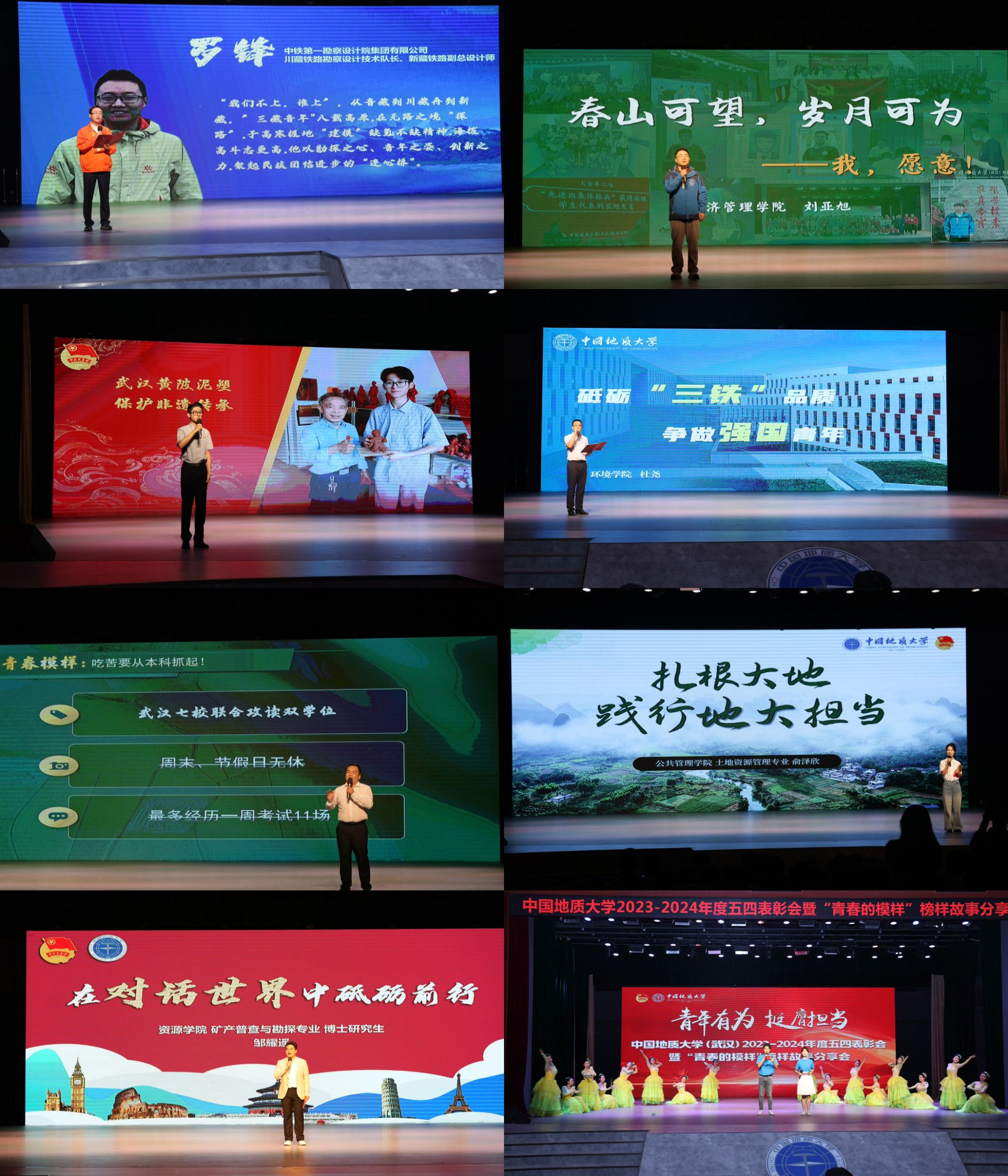 在“青春的模样”榜样故事分享会环节,校友罗锋,团十九大代表、十大标兵研究生、经济管理学院硕士生刘亚旭,全国“青马工程”高校班学员、十大标兵学生、工程学院本科生陈城,学校第16届“十大杰出青年”、环境学院杜尧教授,十大标兵研究生、材料与化学学院博士生车华超,十大标兵学生、公共管理学院本科生俞泽欣,资源学院博士生邹耀遥等7位青年师生代表围绕“有理想、敢担当、能吃苦、肯奋斗、勇攀登”等主题,聚焦不同青年群体在学习工作中的幸福点滴,分享地大青年校友、师生强国担当的青春奋进故事。