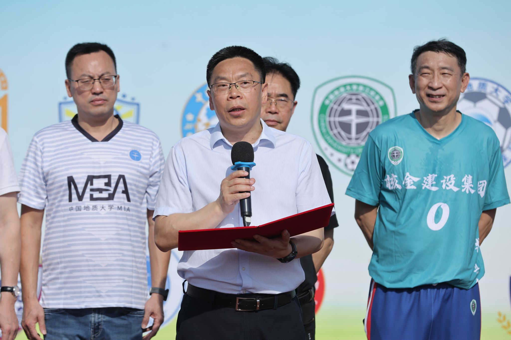 校党委副书记王甫致欢迎辞。他对校友们的到来表示欢迎,对来自各地的校友企业、友好单位给予的大力支持表示感谢。“以地大之名,以足球为媒”,他希望校友们在赛场上充分展现自我,诠释校友间的深厚情谊与地大的精神风貌。