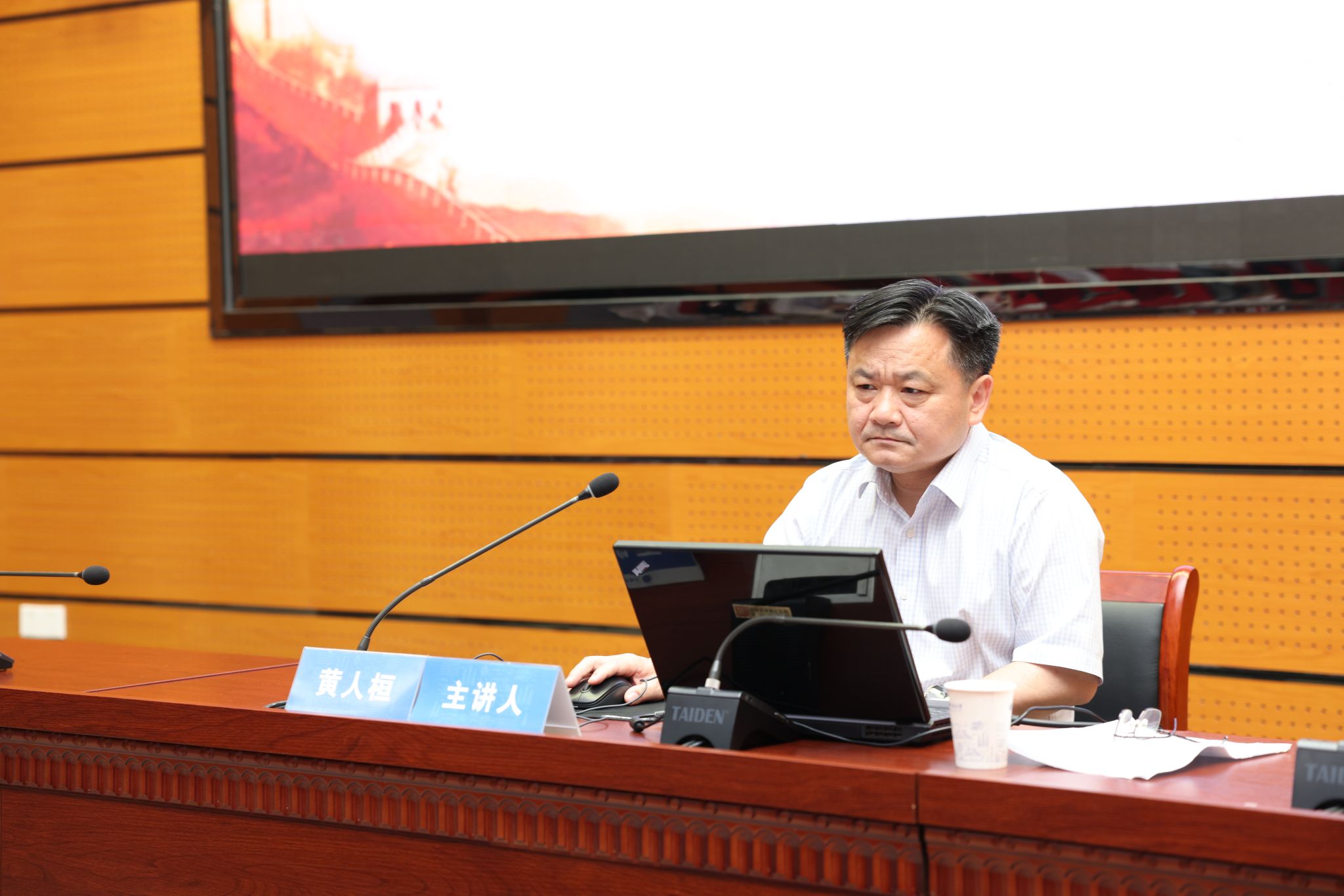 湖北省委保密局副局长黄人桓以《认清形势 明确重点 切实提高机关单位保密管理水平》为题作专题辅导报告。他围绕新修订保密法的实施,分析了当前保密工作面临的新形式和未来发展的新态势,梳理了当前保密工作的若干风险点,通过案例分享对学校开展保密工作提出了指导性意见和建议。