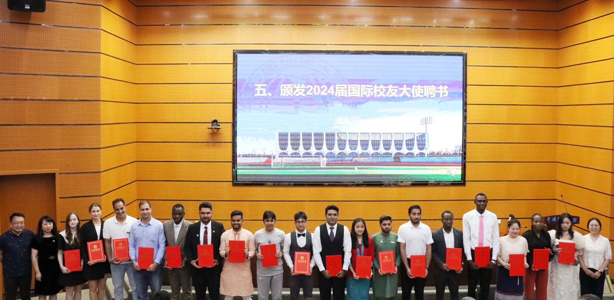 上海校友会秘书长程亮、党委宣传部副部长尚东光、校团委副书记刘明辉为国际校友大使代表颁发聘书。
