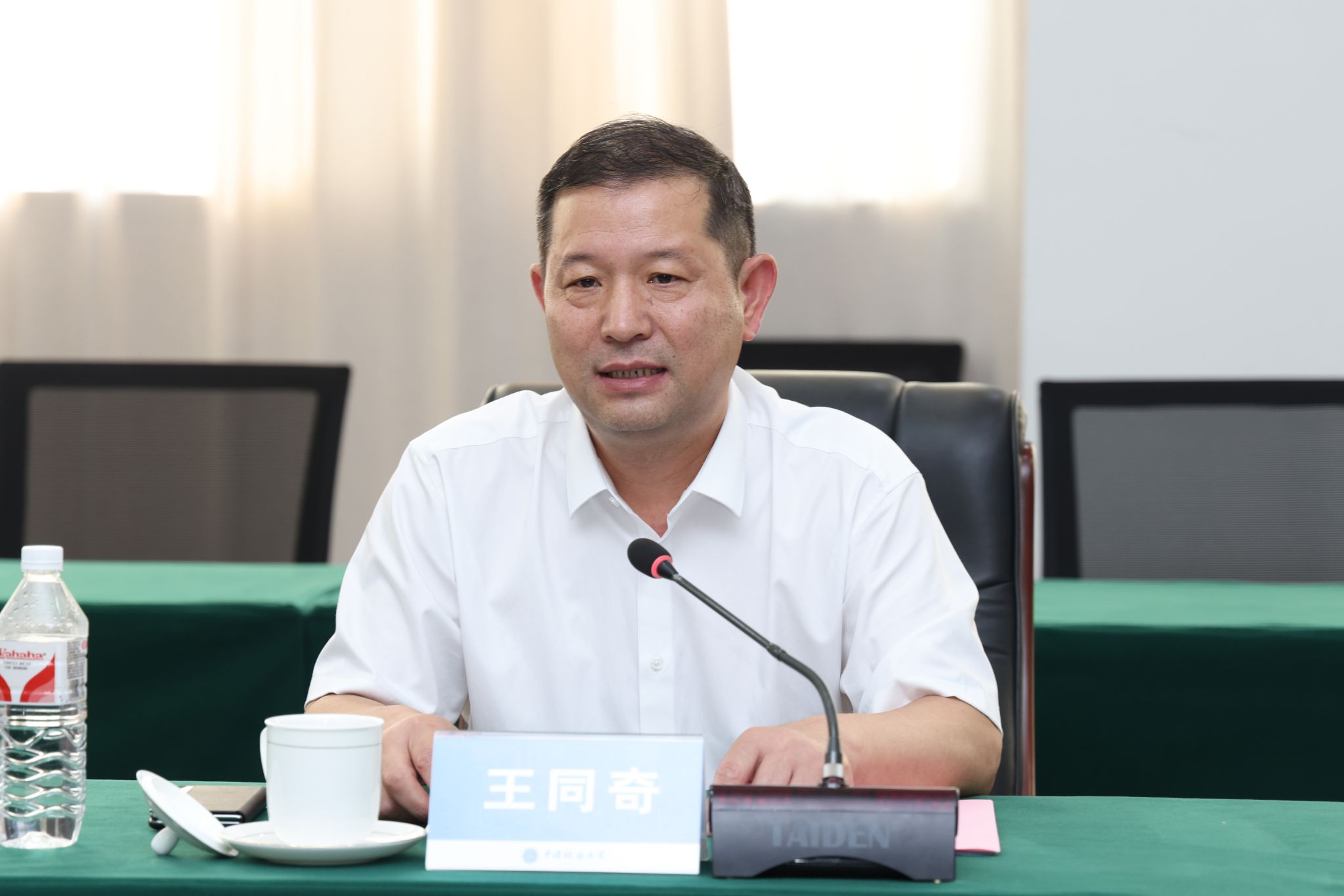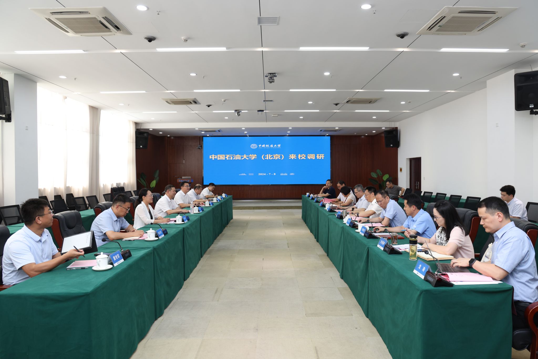 地大新闻网讯(记者 焦思勤)7月8日,中国石油大学(北京)党委书记王同奇一行来校调研。我校校长李建威,党委副书记王甫,中国石油大学(北京)党委副书记、工会主席兼组织部长蒲俊霖及两校二级单位相关负责人参加座谈。王甫主持会议。