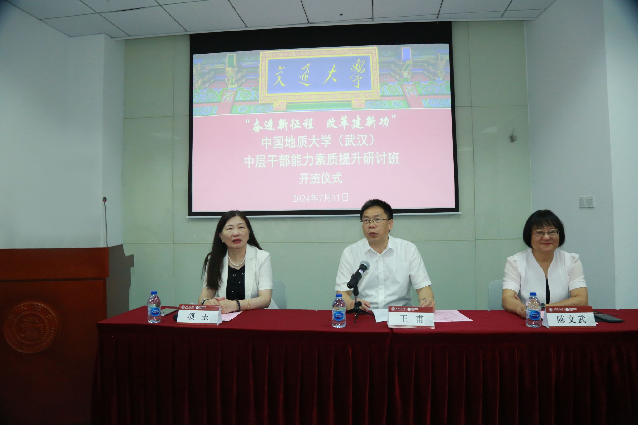 地大新闻网讯(通讯员 熊程)为着力打造德才兼备、忠诚干净担当、堪当建设地球科学领域国际知名研究型大学任务的高素质干部队伍,7月11日,我校组织51名中层干部赴上海交通大学开展为期一周的专题培训。培训班开班仪式在上海交通大学长宁校区举行。上海交通大学终身教育学院副院长项玉,我校党委副书记王甫,党委常委、组织部部长陈文武及全体参训学员参加开班仪式。