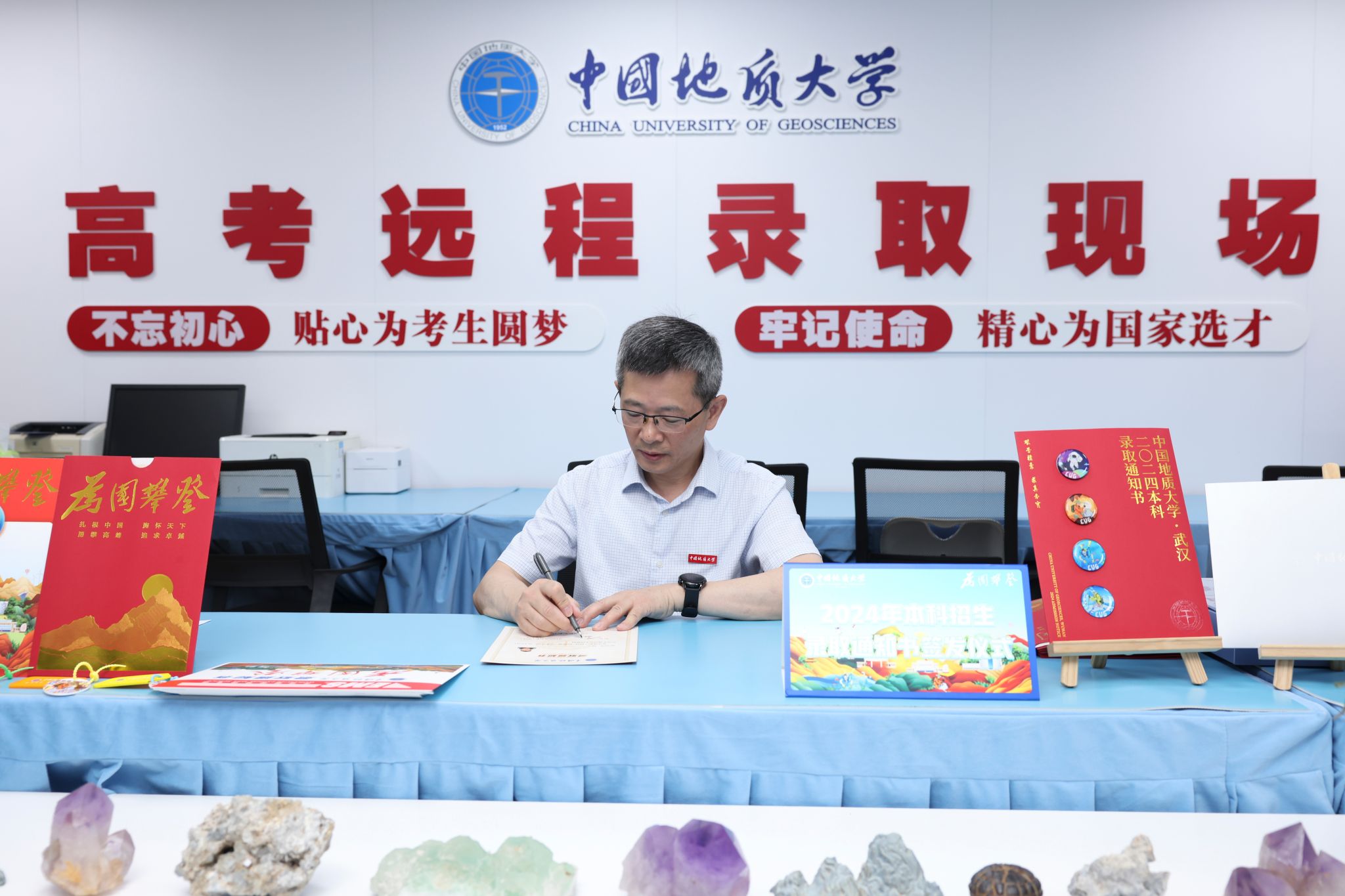 地大新闻网讯(通讯员 姚琳 崔鹏 万颖)7月22日上午,校长李建威来到高考远程录取工作现场,亲笔签发2024级本科生录取通知书,并向录取到我校的2024级新同学表示诚挚的祝贺,致以美好的期许。