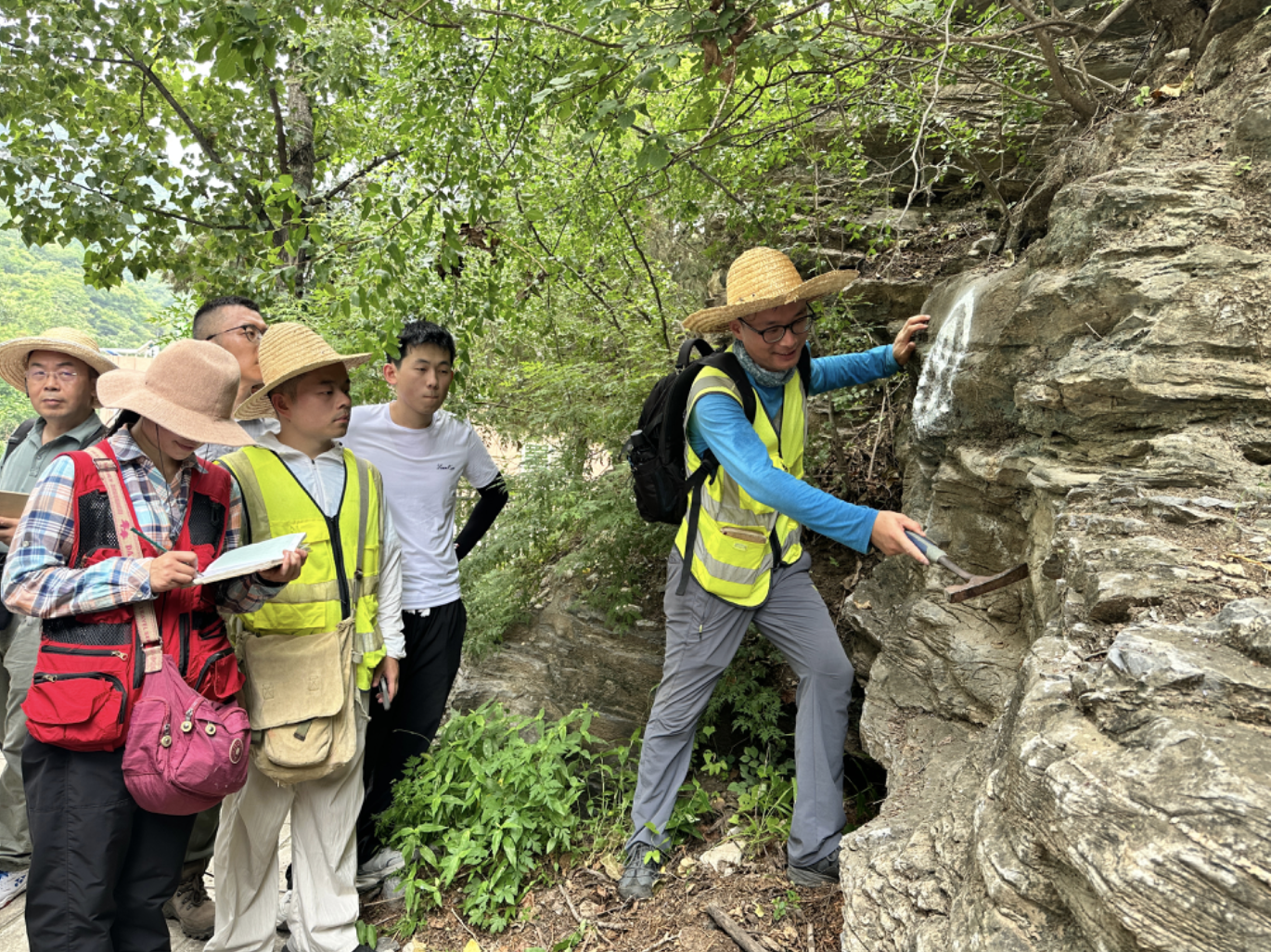 2023年8月,谢树成院士在野外集体备课中给老师们讲解授课要点