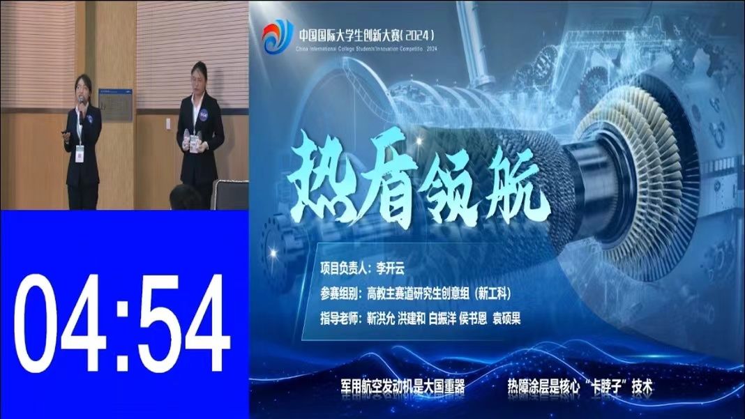 高教主赛道研究生创意组金奖、材料与化学学院项目《热盾领航》,由靳洪允、洪建和、白振洋、侯书恩、袁硕果五位老师共同指导,李开云博士为项目负责人,团队成员包含15名硕博研究生。针对目前航空发动机热障涂层存在的耐温、结合强度不足等难题,团队成员于2020年主导研发第二代高熵稀土锆酸盐热障涂层材料,解决了材料高温相变、纳米粉体团聚以及纳米粉无法直接用于等离子喷涂等难题,通过高熵设计理论与方法、涂层材料制备关键技术和热障涂层制备技术等创新,热障涂层的耐温能力、隔热能力、结合强度以及抗冲击性能等方面均实现了突破。项目的产生与执行过程中,利用产教融合、科教融汇、多学科交叉等优势培养拔尖创新人才,为国家航空事业贡献青春力量。