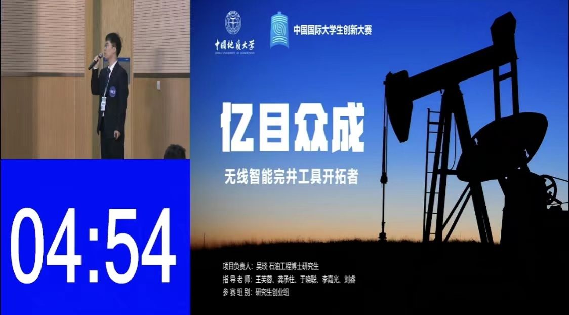 高教主赛道研究生创业组金奖、资源学院项目《亿目众成--无线智能完井工具开拓者》,由王芙蓉、龚承柱、于晓聪等老师指导,博士研究生吴琰担任项目负责人。智慧油田是石油工业的发展趋势,大数据和智能化技术是其核心驱动力。为解决智能完井工具面临的共性通信难题,团队多学科交叉,专创融合,针对现有通信技术面临的三大难题:传不远、传不快、传不稳,开展技术创新,独创三大类技术成果。结合现场实际工程需求,形成了适用于钻井、射孔、动态液位监测、井下生产监测等多种智能工具,实现了EM-MWD、智能射孔、智能排液、智能配水等智能化应用,极大的提高油气藏采收率,有效推动了智慧油田数字化转型。