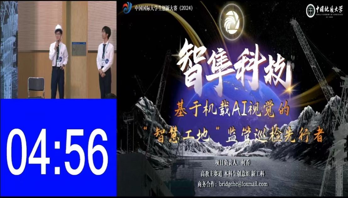 高教主赛道本科生创意组金奖、机械与电子信息学院项目《智隼科技——基于机载AI视觉的“智慧工地”监管巡检先行者》,由程卓、黄田野等老师指导,本科生何乔担任负责人。项目锚定工地智能巡检无人机的市场空白,推出以边缘计算与YOLO算法为核心的智能巡检无人机。辅以半固态激光雷达,完成对施工建筑“建模—报价—巡检—审查”的全生命周期干预。额外增加各类非视觉传感器,打造工地无人机中的超级“巨无霸”。项目启动于2023年11月,目前已通过多家施工监管企业验收,签订意向订单累计200万。“智慧领航,锐利如隼”——守护工地安全,点亮万家灯火是智隼人永恒的使命与夙愿。