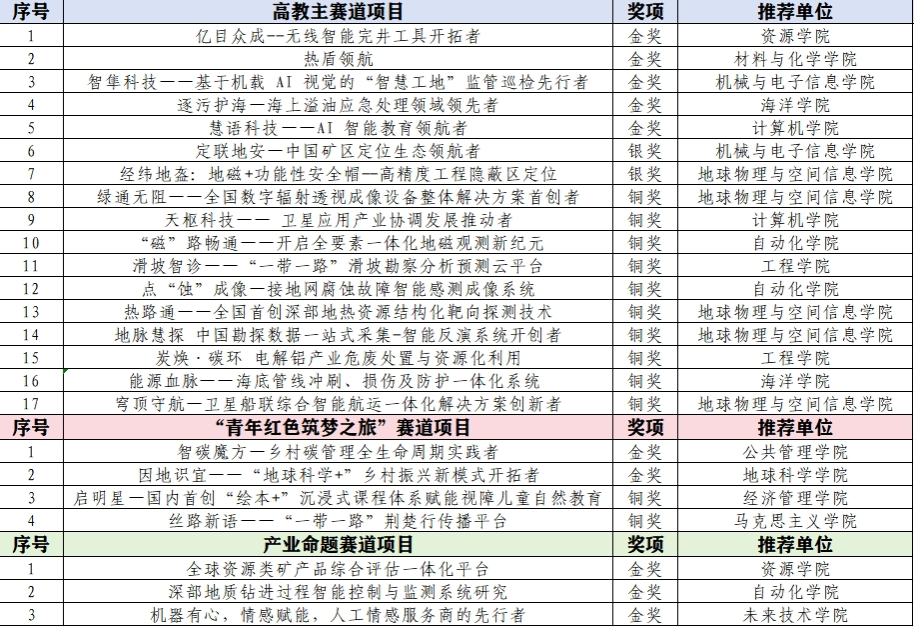 中国国际大学生创新大赛(2024)省赛获奖项目一览表