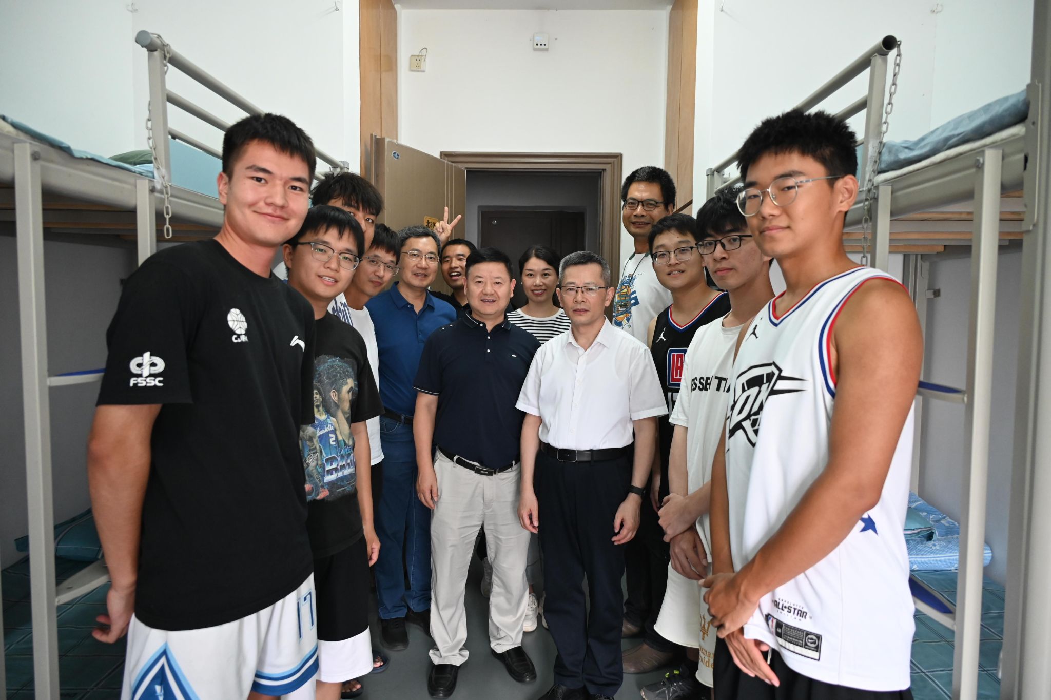 9月13日,李建威一行抵达秭归产学研基地后,到综合楼前台、学生宿舍、图书角、医务室等地方看望、慰问实习师生、医务人员、后勤员工。李建威表示,后勤保障是高校育人体系的组成部分之一,也是“三全育人”的重要力量,他对后勤工作人员为实践教学的付出表示感谢。他了解同学们在基地的学习与生活,询问大家的实习收获,叮嘱师生们实习期间要注意安全,勉励大家要珍惜宝贵的实习机会、用好实习资源、不断强化时空观、系统观和演化观,在实践中练就过硬本领。