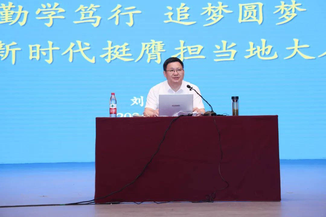 校党委书记刘杰以《勤学笃行 追梦圆梦,做新时代挺膺担当地大人》为题讲授“开学第一课”,他带领新生认识世界和中国的发展大势,回顾学校72年辉煌校史,勉励同学们知校荣校,做接续奋斗的地大人、识势明理,做志存高远的追梦人、挺膺担当,做为国攀登的圆梦人。