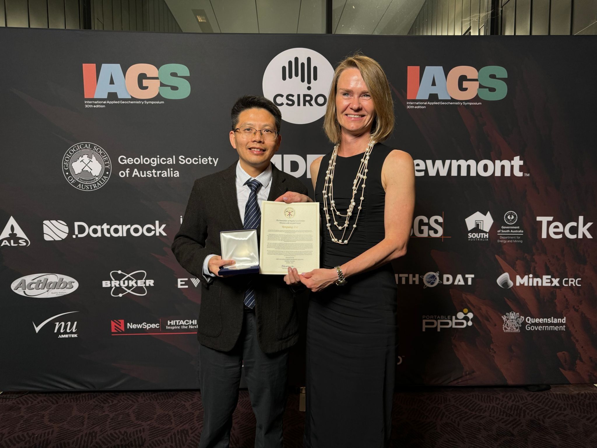 地大新闻网讯 (通讯员 殷茵 熊义辉) 近日,在澳大利亚阿德莱德举办的第30届国际应用地球化学大会上,我校地质过程与矿产资源国家重点实验室左仁广教授荣获国际应用地球化学家协会(AAG)最高奖——AAG金奖(Gold Medal)。左仁广受邀参加此次大会,并作了题为《大数据人工智能驱动的地球化学数据挖掘》的大会报告。