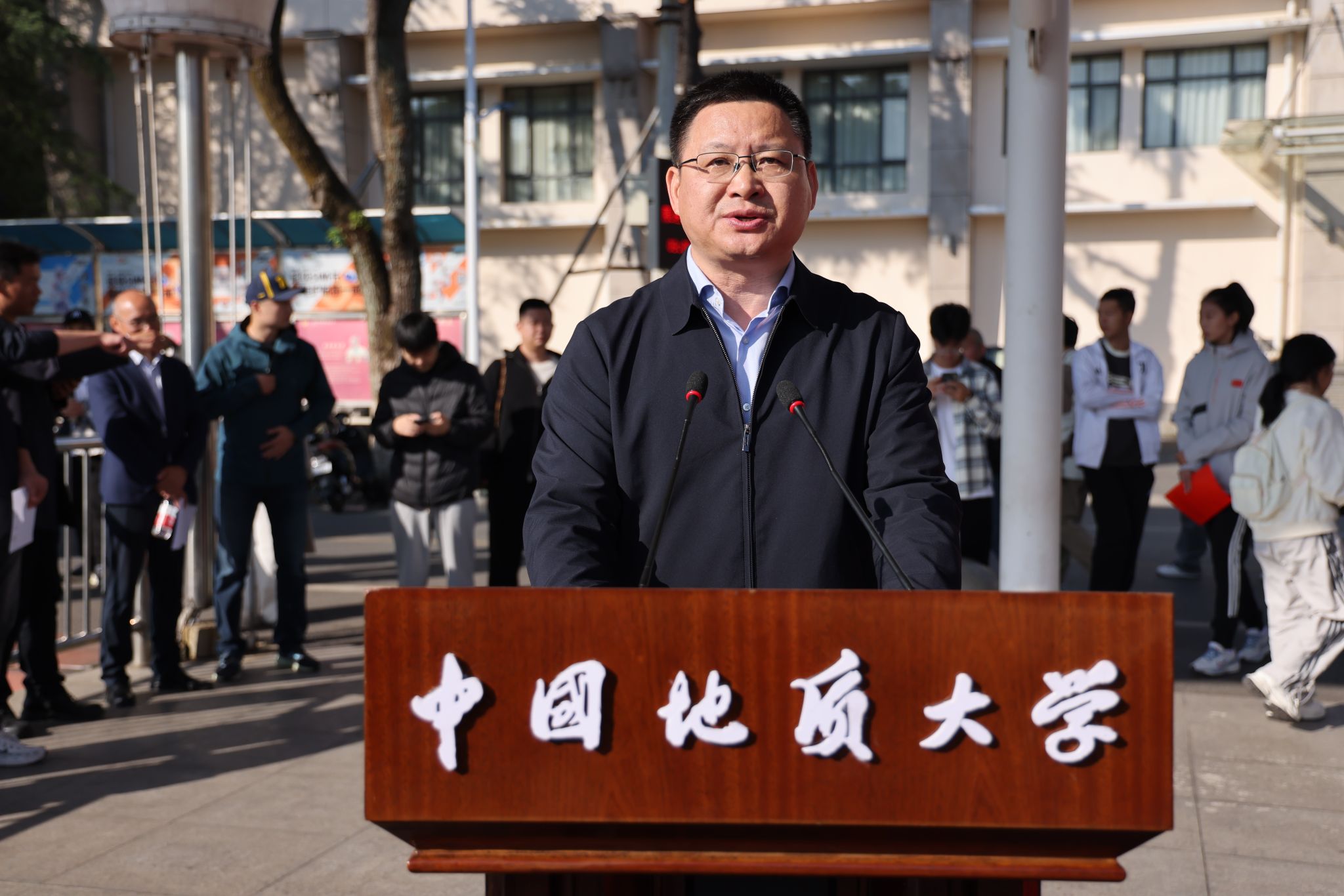 校党委书记刘杰致开幕辞。他说,运动会是学校体育工作的一场盛会,不仅传递着地大的精神特质,更展现着师生的时代风貌。建校70余年来,体育运动与学校的事业发展密切相连,成为地大办学的一张靓丽名片;与之相随,为国攀登,也成为地大人共建共享的精神高地。他回顾了学校在登山、群众体育与体育专业教育、竞技体育等方面取得的骄人成绩,强调弘扬地大“攀登精神” ,希望师生们在体育运动中强健体魄、追求卓越,朝着更快、更高、更强、更团结的目标不断进发,为学校早日建成地球科学领域世界一流大学不懈奋斗。