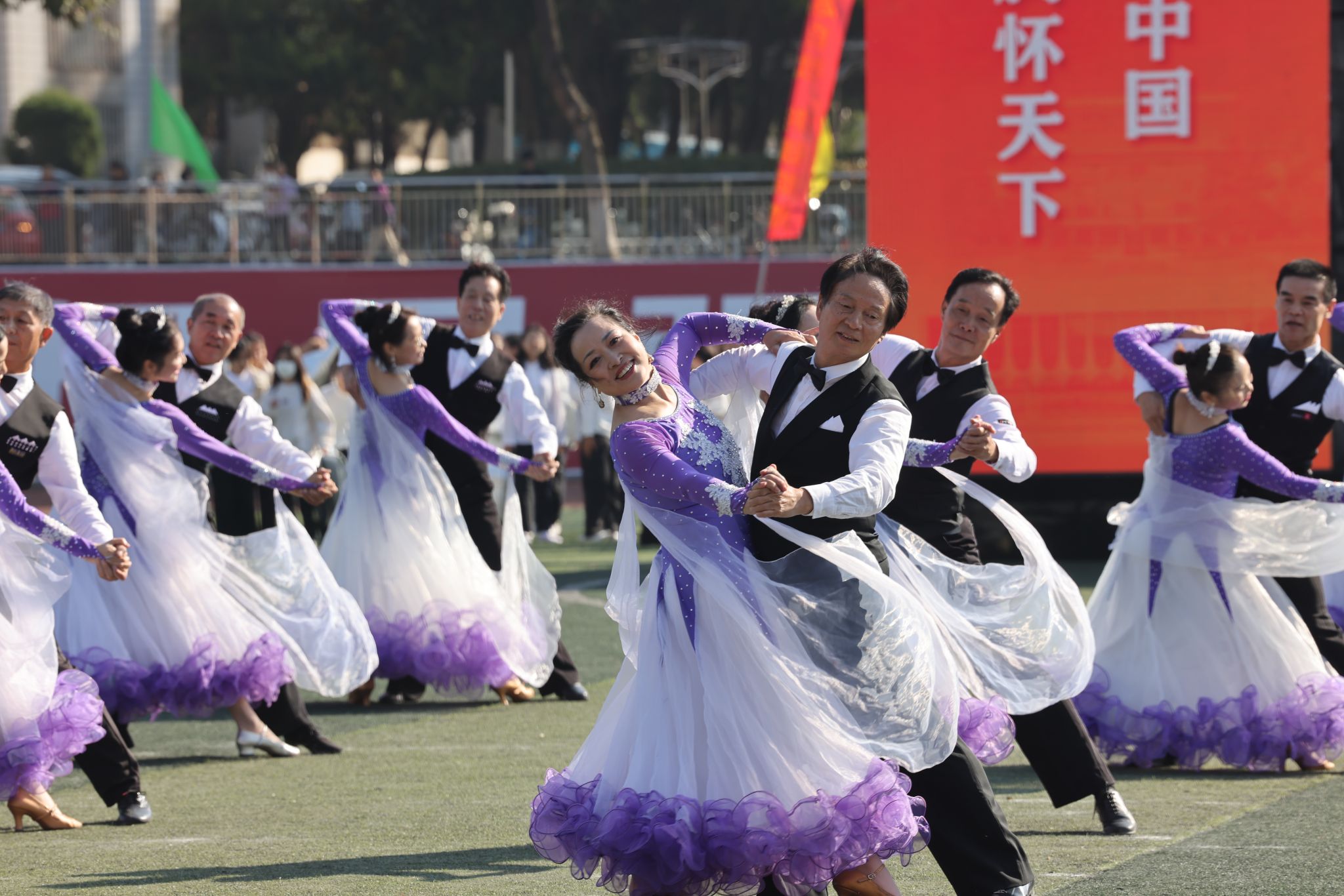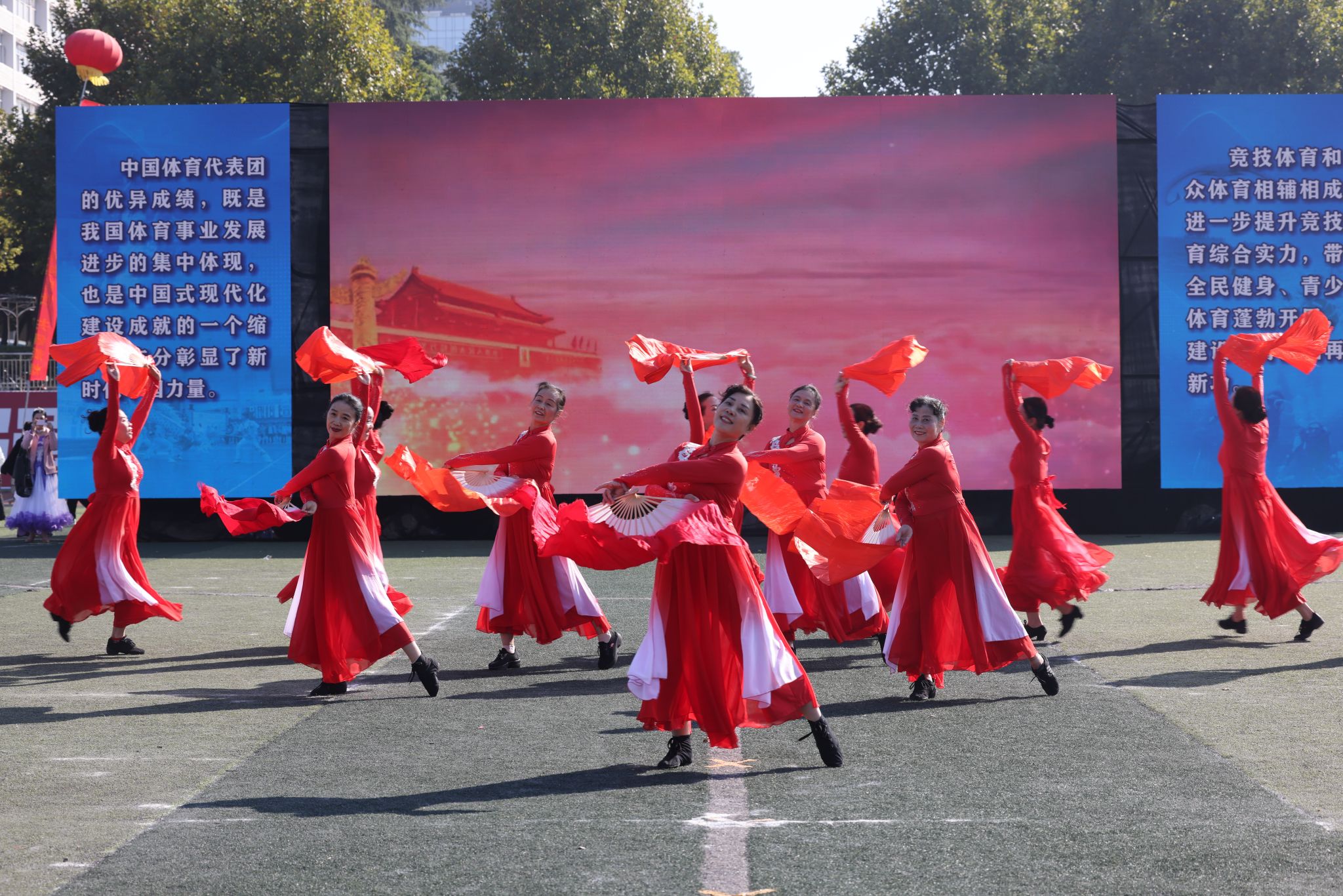 离退休工作处精心组织老同志编排舞蹈《五星红旗》,深情告白祖国,他们手举红扇,身着红裙,歌唱祖国,用精湛的舞技和深情的表演,让师生们感受到五星红旗的魅力与力量。