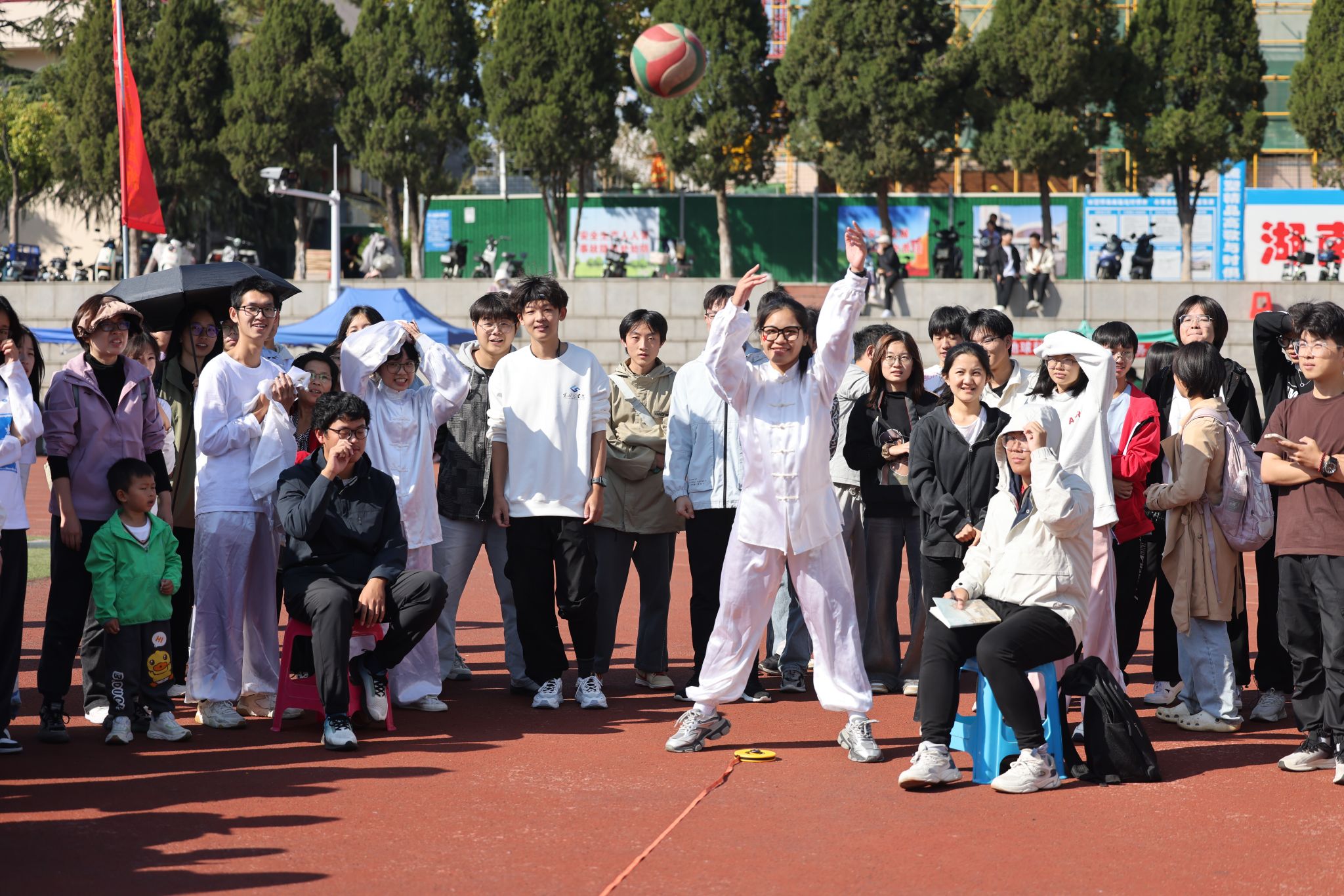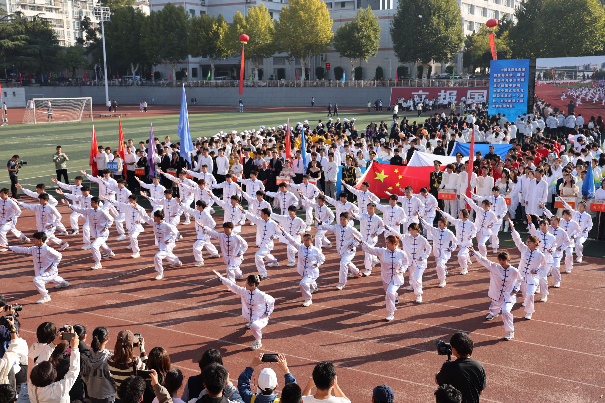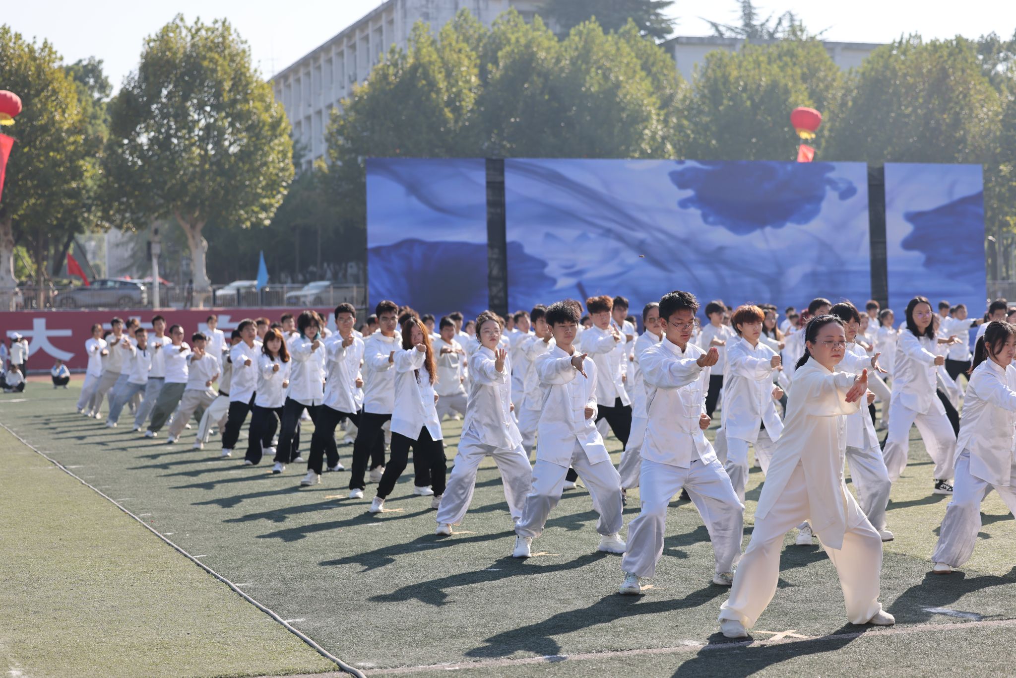 来自22个院系、校工会太极拳协会以及5个职能部门300余名师生带来《师生同练八段锦》。“增强文化自信自强,铸就社会主义新辉煌。”以独特的方式展现了文化与健康的紧密结合,为校园生活注入了新的活力,树立“健康第一”的指导思想,增强师生体质,增进师生之间的情感交流,营造出积极向上、团结和谐的校园氛围。