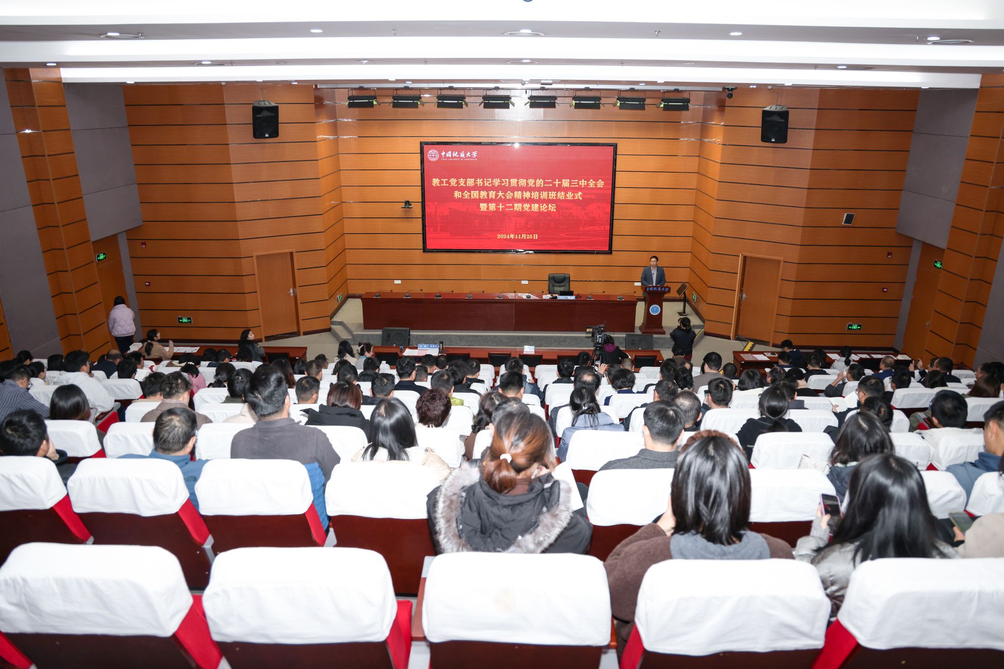 刘杰作《凝心聚力 挺膺担当 扎实推进教育强国建设地大实践》专题辅导报告。他指出,党的二十届三中全会对统筹推进教育科技人才体制机制一体改革、提升国家创新体系整体效能作出重要安排,全国教育大会吹响了新时代新征程加快建设教育强国的动员令,作为高等教育工作者,要牢牢把握会议召开的重大意义、目标要求、重大原则和重大举措,准确把握新时代新征程高等教育改革发展的新形势,围绕《教育强国建设规划纲要》实施,聚焦塑造立德树人新格局、增强高等教育综合实力、培育壮大国家战略科技力量、深化教育综合改革、完善教育对外开放战略等方面攻坚破题、实干担当。