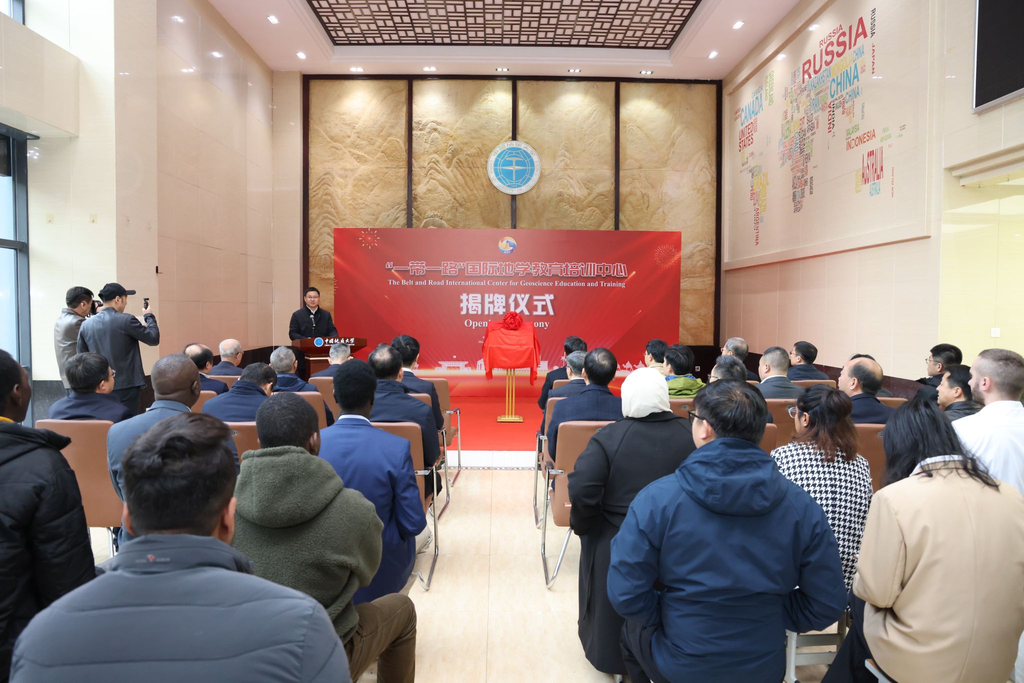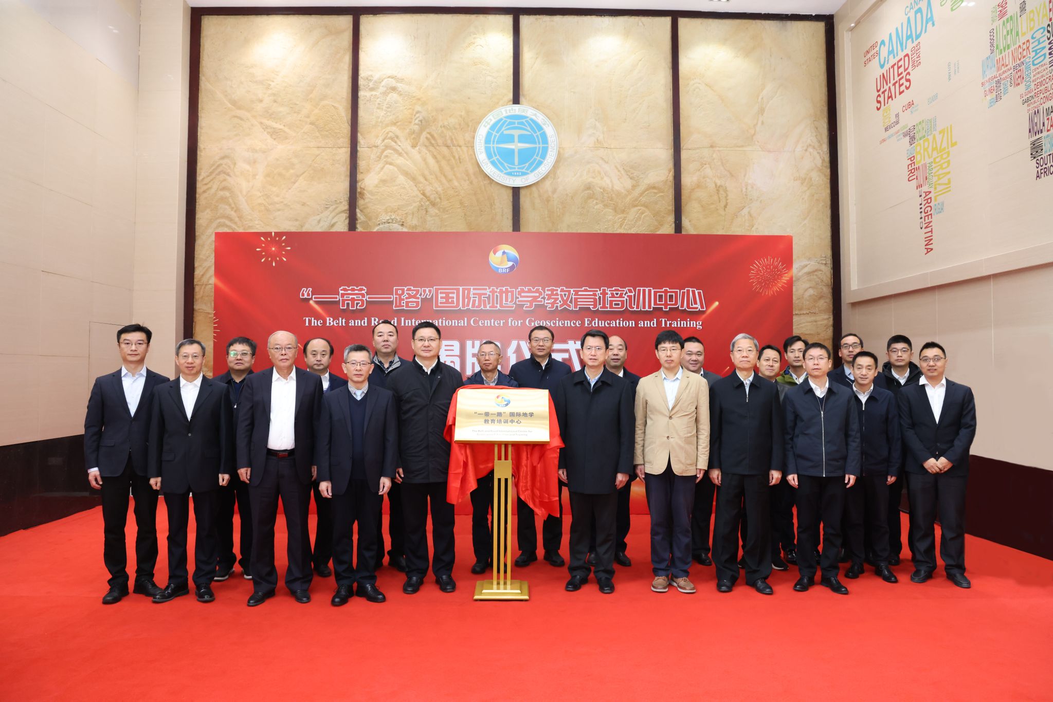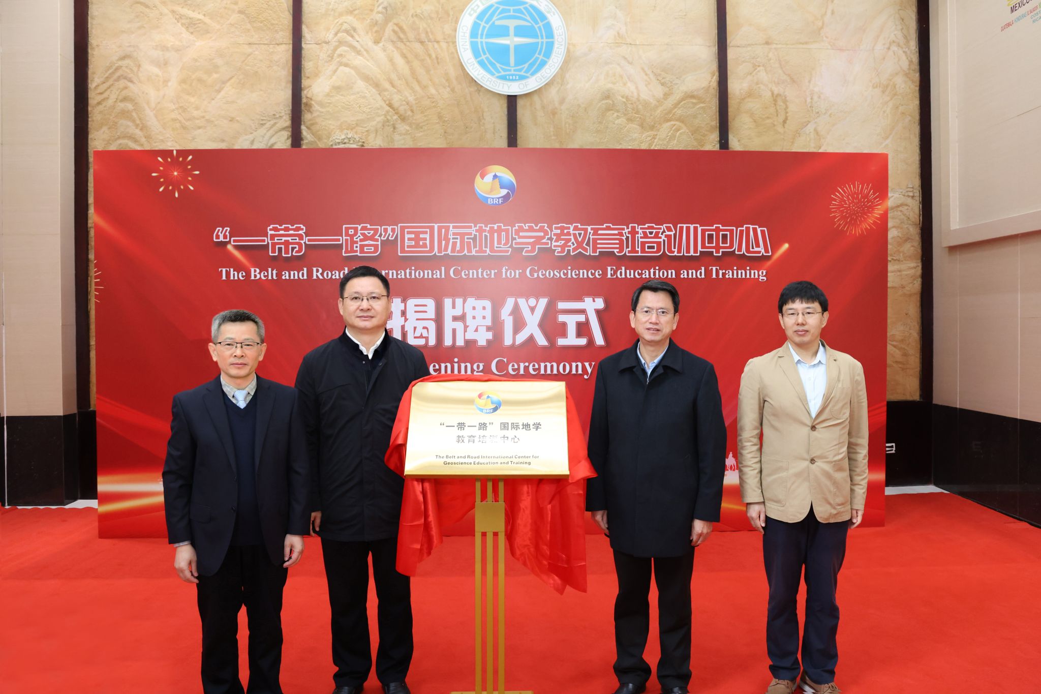 颜成义、刘杰、李建威、范黎共同为“一带一路”国际地学教育培训中心揭牌。