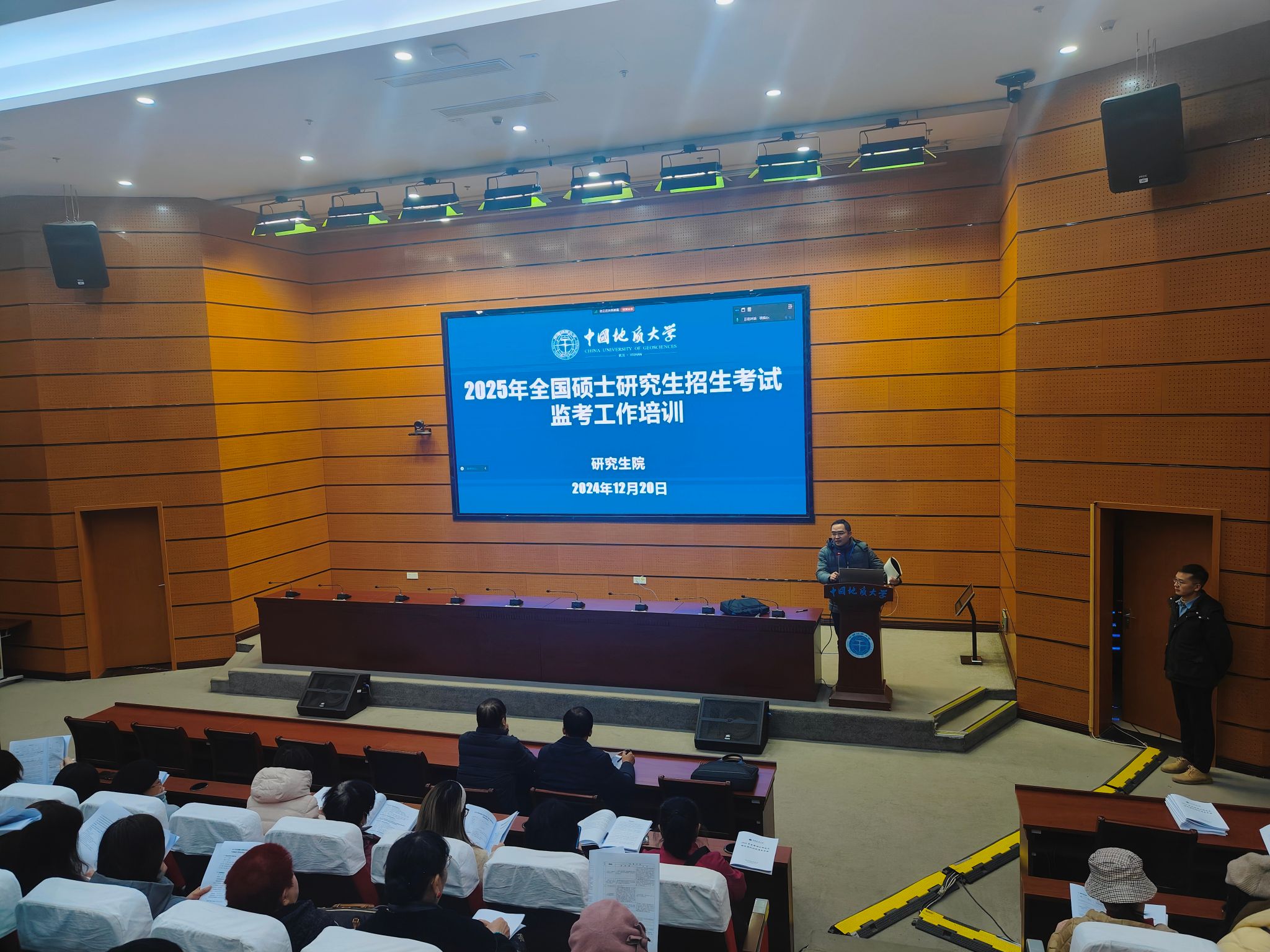 为确保考务流程的严谨性和规范性,研究生院组织了线上和线下相结合的考务人员培训。全体考务人员参与了2025年全国硕士研究生招生考试(初试)考务人员网上培训,均顺利通过了线上考核。考点有关负责人面向考场工作人员、监考员、巡考员、安保员、志愿者等工作岗位举行了多场具体业务培训,针对不同时间段、不同工作内容制定了详细的工作文件,明确了工作流程和具体要求,提高了考试组织工作的规范性。