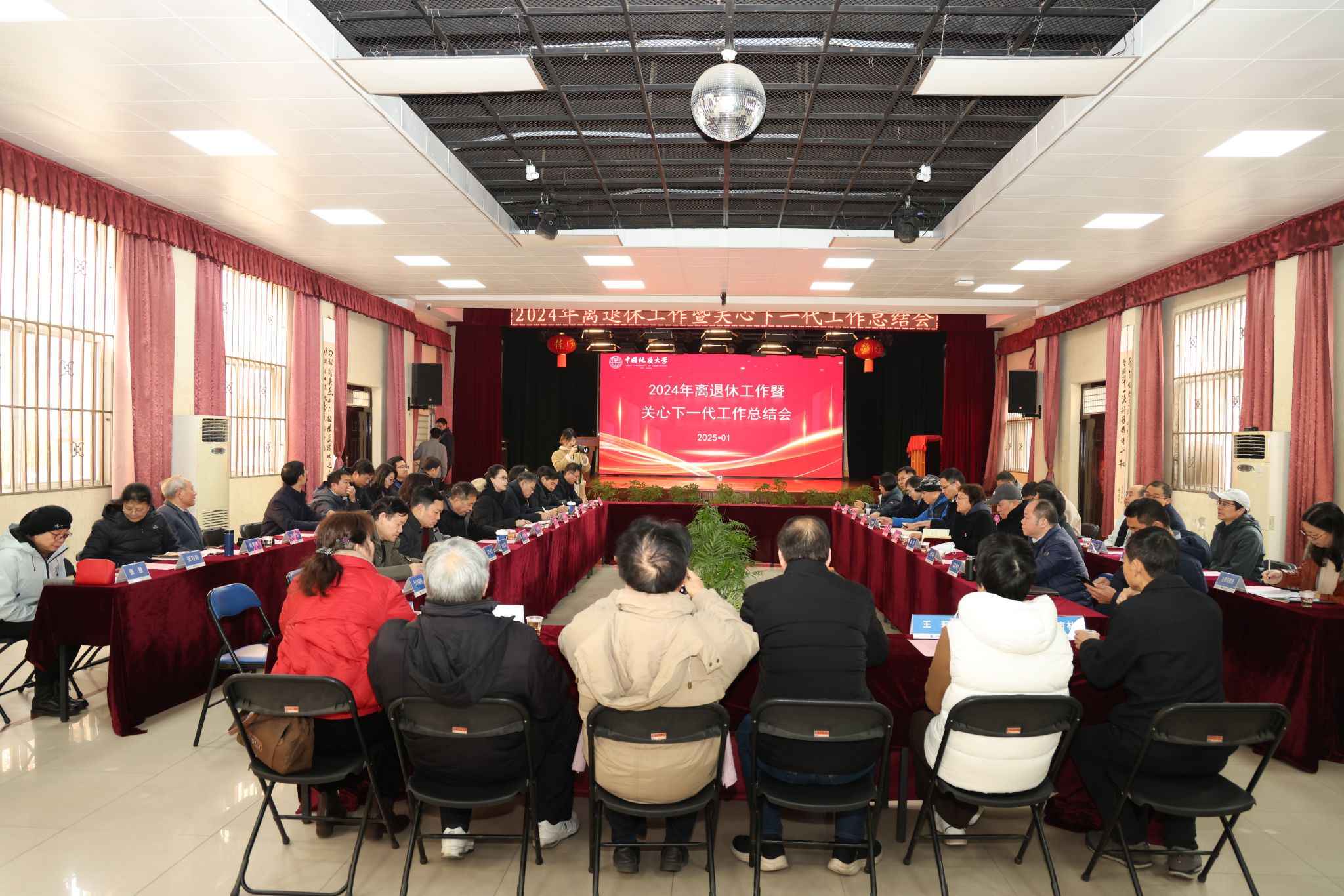 地大新闻网讯 (通讯员 叶青 摄影 汪颜)1月2日,我校2024年离退休工作暨关心下一代工作总结会在老年人活动中心北楼一层大厅举行。校党委书记刘杰,校党委常委、组织部部长、统战部部长陈文武,原校长、校关工委常务副主任张锦高,原党委书记、校老年(老教授、老科协)协会会长郝翔,部分二级党组织书记、管理服务机构负责人、离退休教职工代表60余人参加会议。陈文武主持会议。