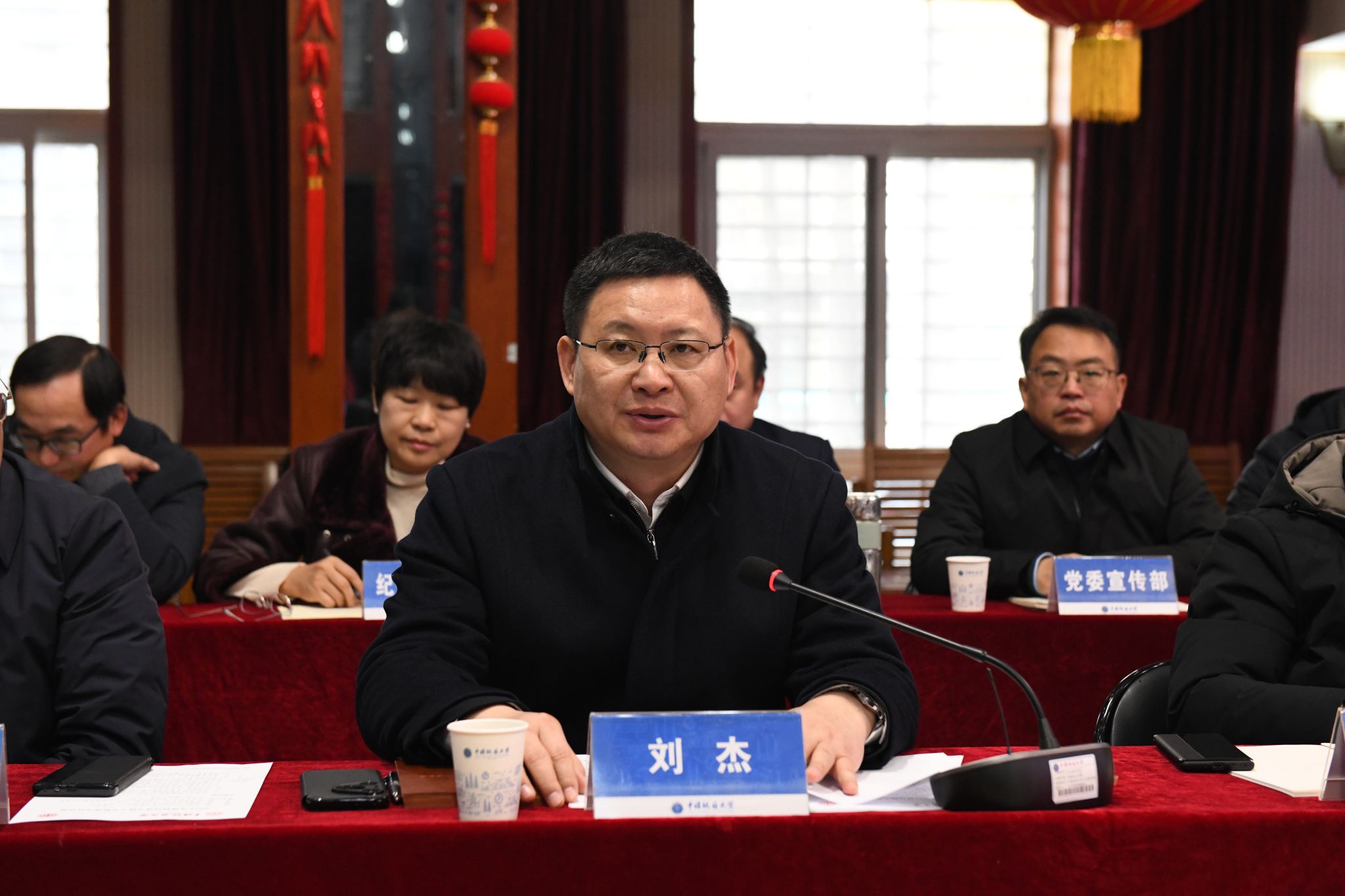 研究生院院长赵葵东作高层次人才培养改革专题汇报;人力资源部部长郭上江、后勤保障部部长徐岩、医院院长谢先才和张玮分别围绕会前征集议题作专题发言,汇报本单位2024年度完成的事关教职工切身利益、事关民生的重点工作。