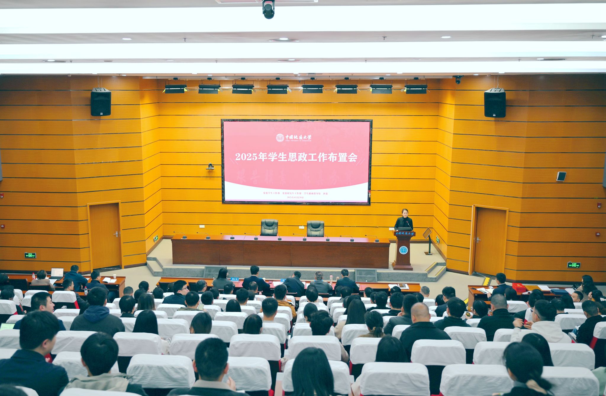 地大新闻网讯(通讯员 排孜丽亚 蒋怀柳)3月20日,我校2025年学生思政工作布置会在南望山校区召开。校党委副书记王甫,党委学生工作部、党委研究生工作部、学生就业指导处、团委等单位负责同志及全体工作人员,人才培养单位党委副书记、专兼职辅导员及2024年度十佳班主任参会。会议由党委学生工作部副部长蒋怀柳主持。