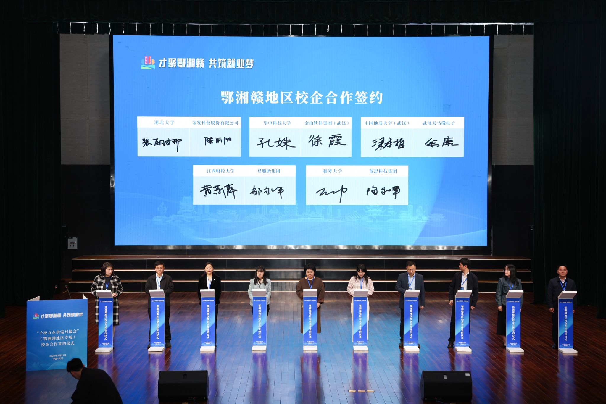 地大新闻网讯(记者 焦思勤)3月23日,由教育部、人力资源社会保障部、湖北省人民政府联合主办的“千校万企供需对接会”(鄂湘赣地区专场)暨“湖北百校联动”2025届高校毕业生春季供需见面会在我校未来城校区举行。教育部全国就指委、湖北省政府办公厅相关领导,湖北省、湖南省、江西省教育厅及湖北省、湖南省、江西省人社厅相关负责人,鄂湘赣地区参会高校和企业、学生代表参加签约仪式。