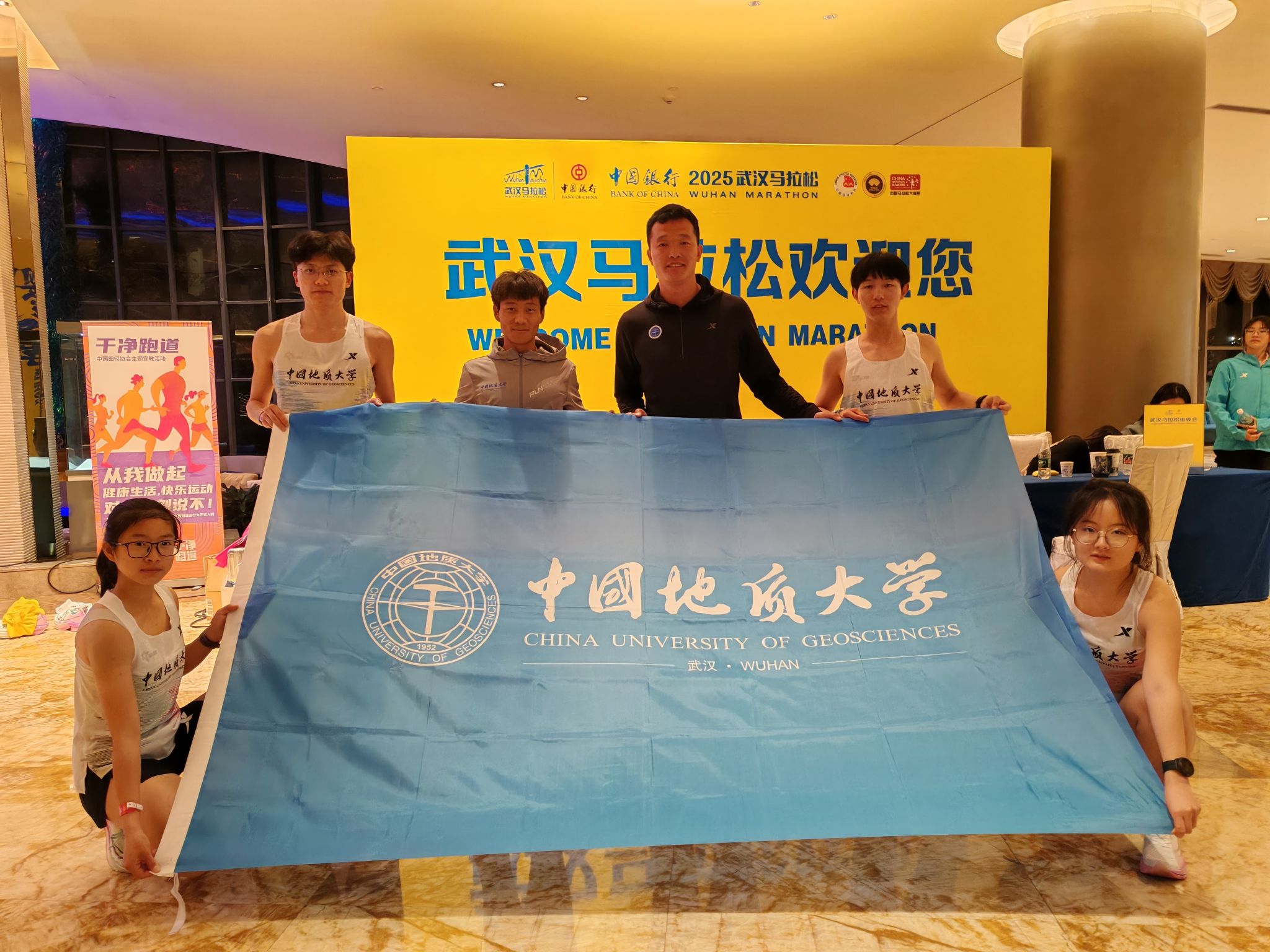 地大新闻网讯 3月23日,在武汉马拉松赛道上,我校体育学院2023级学生何杰以2小时10分28秒的成绩打破国内选手赛会纪录,其他4名非体育专业同学组成的代表队也取得了优异成绩。