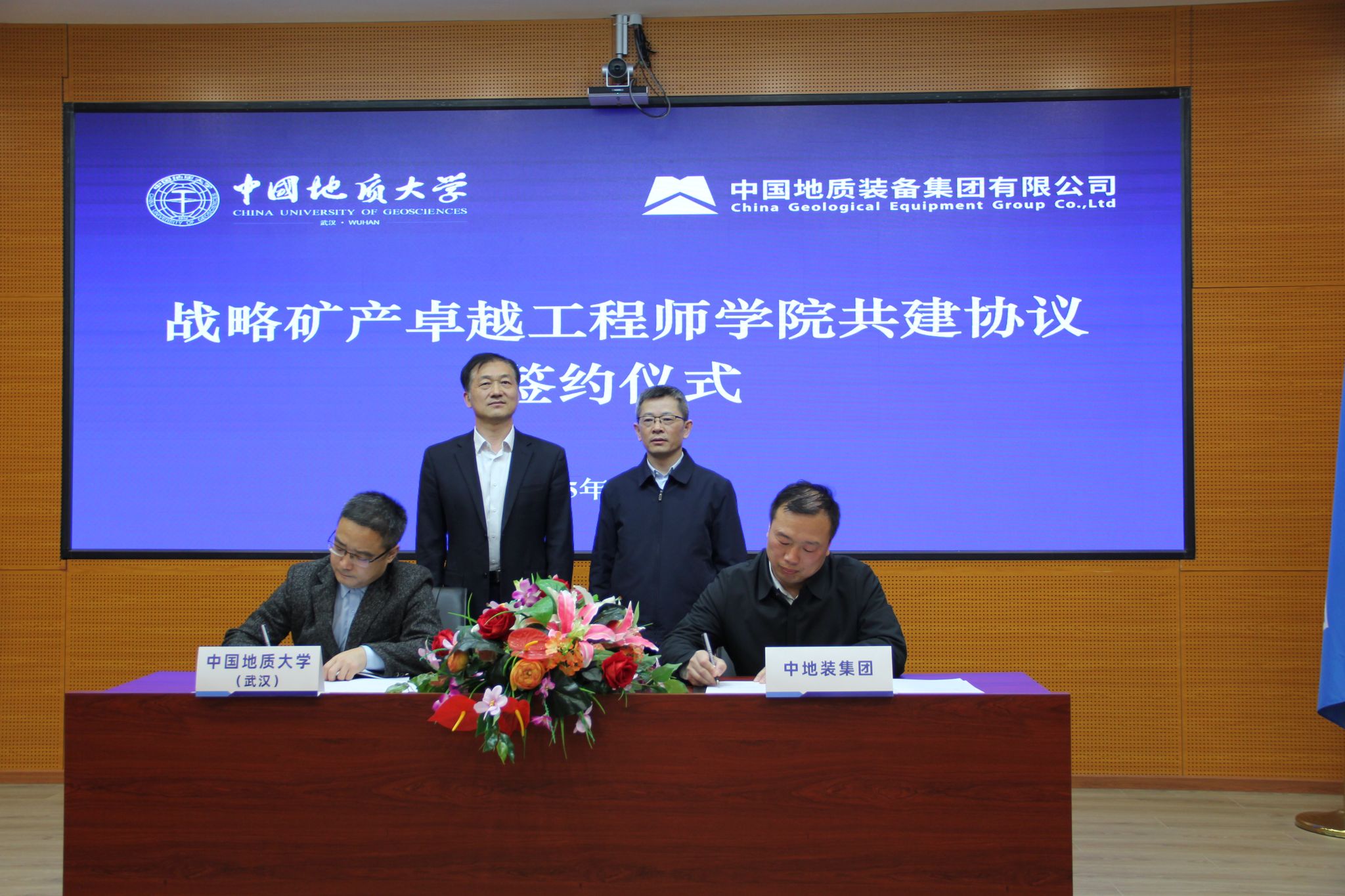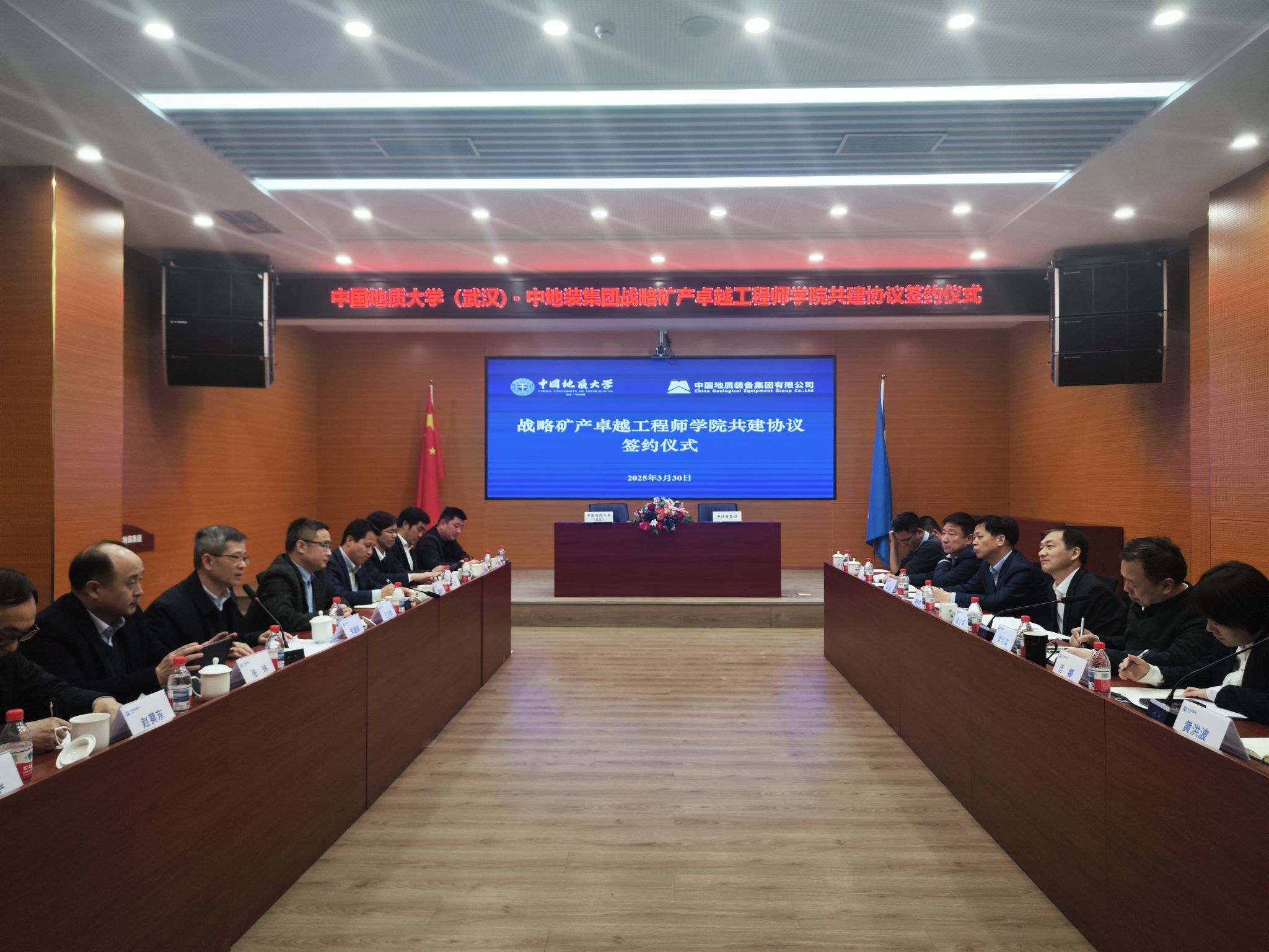 地大新闻网讯 3月30日,我校与中国地质装备集团有限公司(以下简称“中地装集团”)在北京举行战略矿产卓越工程师学院共建协议签约仪式。中地装集团党委书记、董事长权良军,党委副书记、总经理刘海涛,副总经理高申友、历娜;我校校长李建威、副校长王力哲参加签约仪式。