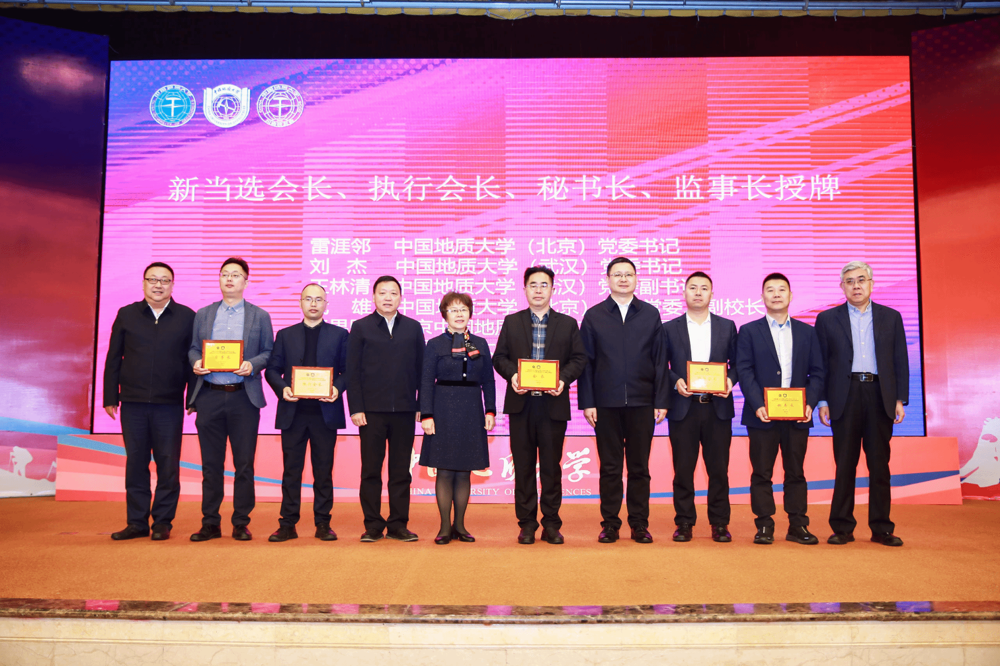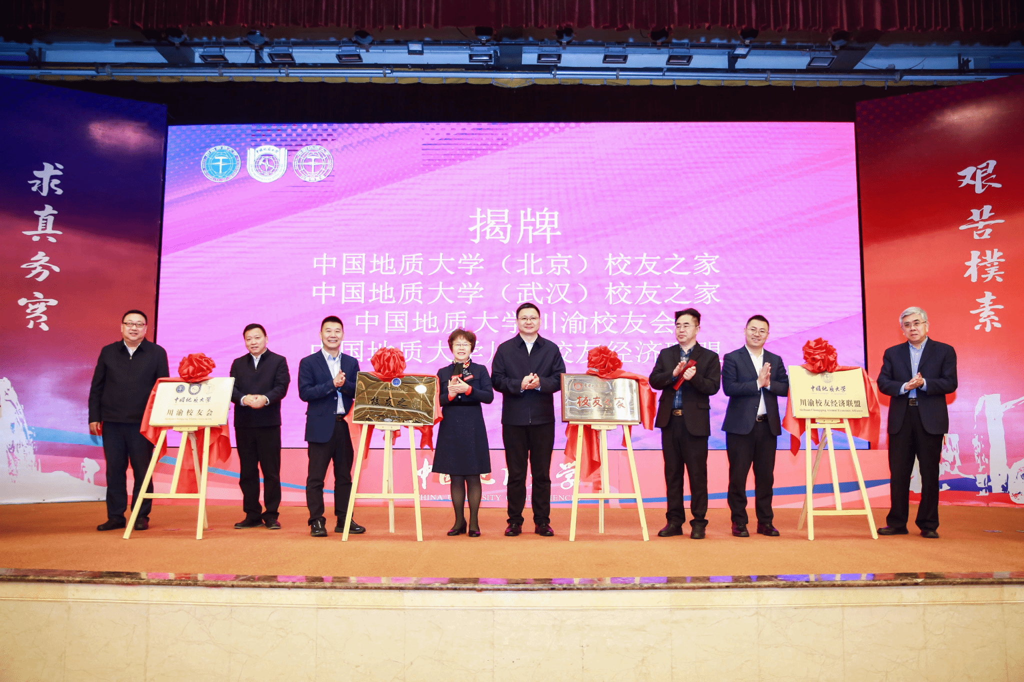 刘杰、雷涯邻、王林清、武雄、王果胜共同为第五届理事会成员颁发聘书,并为“开云app登录入口川渝校友会校友之家”“开云app登录入口川渝校友会”“开云app登录入口校友经济联盟”揭牌。
