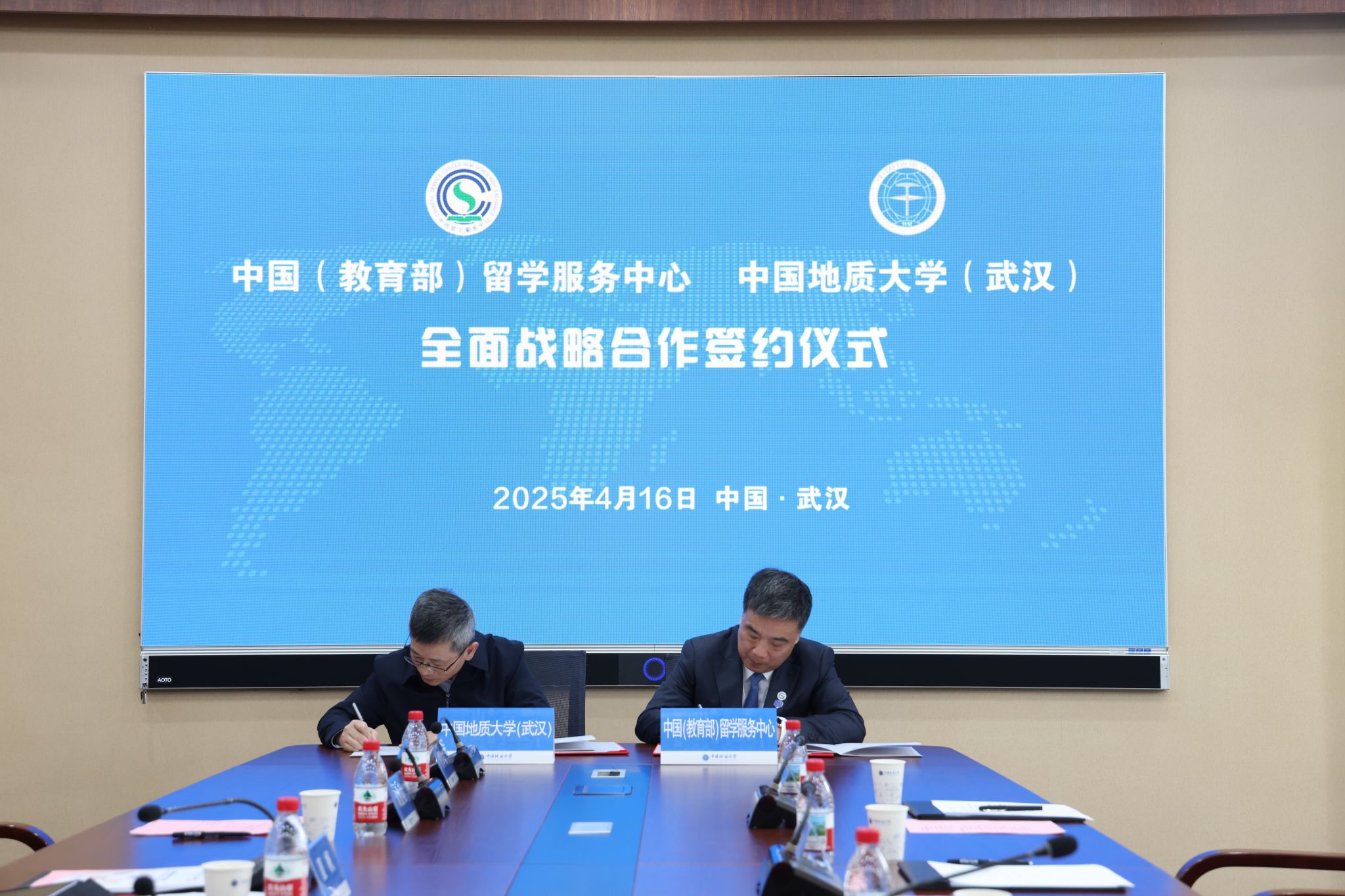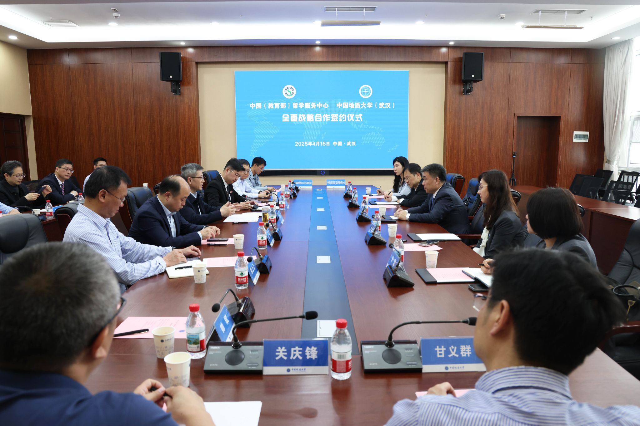 地大新闻网讯 (通讯员 吴思源 许峰 摄影 孙彦钦)4月16日,我校与中国(教育部)留学服务中心(以下简称“中留服”)举行座谈并签署全面战略合作协议。中留服党委书记、主任王大泉,我校校长李建威、副校长夏帆,双方相关单位负责人参加签约仪式。夏帆主持会议。