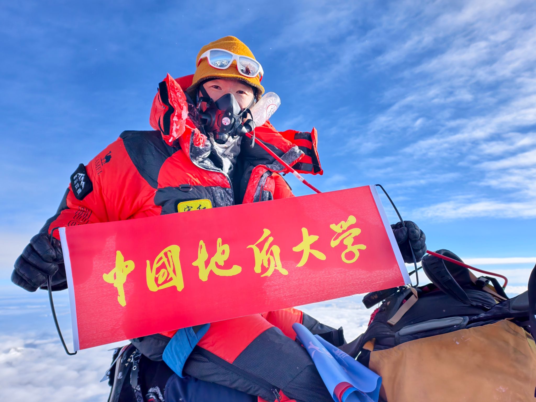 宋红在2007年入学后就被登山运动的魅力所吸引,并成功通过选拔加入我校登山队,2008年,北京奥运圣火在珠峰之巅熊熊燃起,登顶珠峰的梦想在他心底生根发芽。2012年,地大登山队攀登珠峰向母校60周年献礼时,作为入门者的他未能获得冲顶资格。2020年,他跟随导师陈刚加入珠峰测高队伍,但由于天气恶劣,他再次错过登顶机会。宋红虽然感到遗憾,但仍以高度责任感完成团队后勤保障工作,“团队使命高于个人梦想,虽然我没能登顶,但也算是完成了自己任务和使命。”宋红说。
