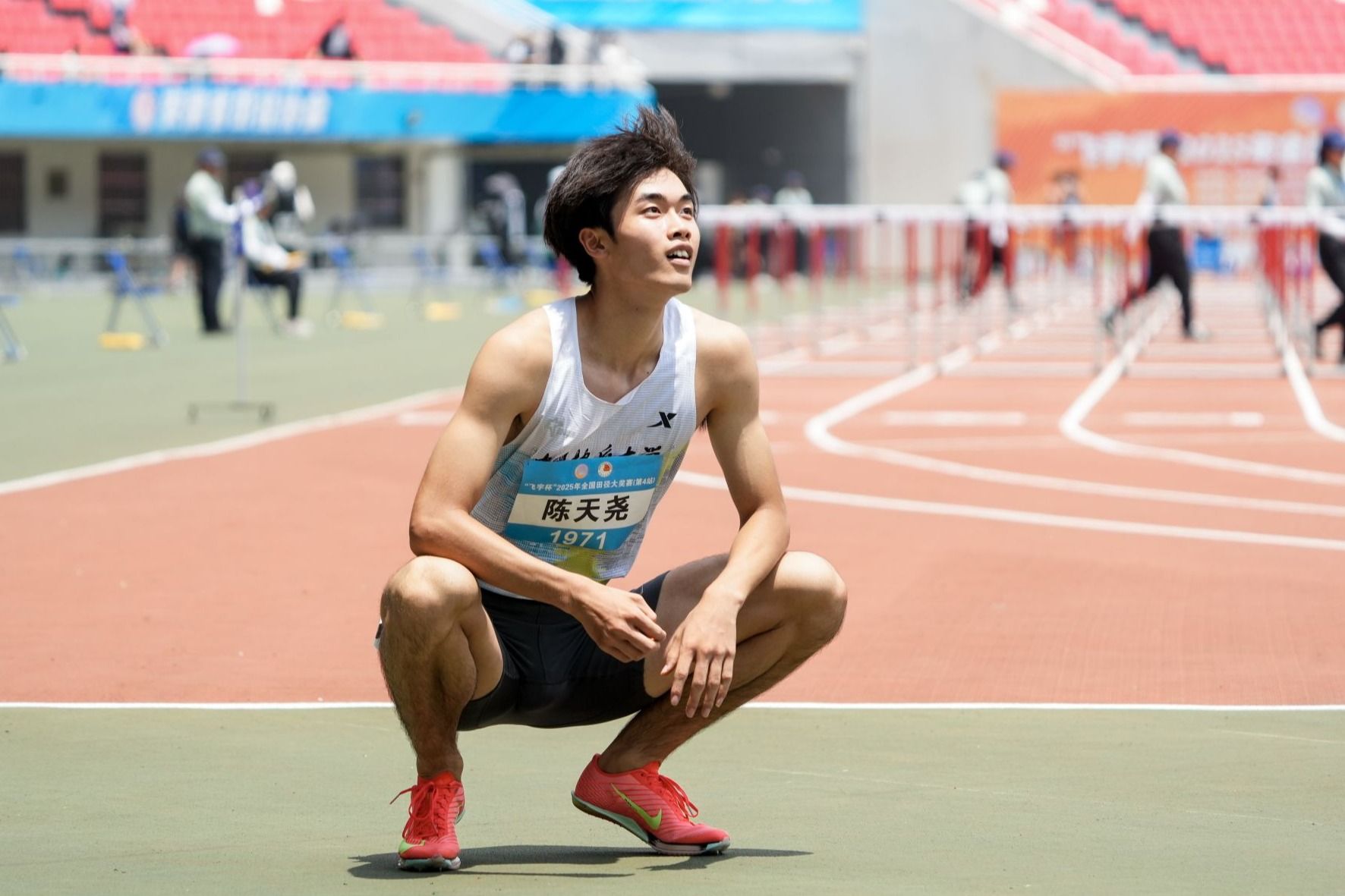 陈天尧,2005年9月出生于湖南湘潭,现就读于公共管理学院行政管理专业,主项男子110米栏。曾获得2024年湖北省大学生田径运动会男子110米栏冠军、2025年全国田径大奖赛第四站男子110米栏亚军。令人欣喜的是,在一年半的时间里,陈天尧实现了运动等级由国家二级运动员到国际级运动健将的飞跃。