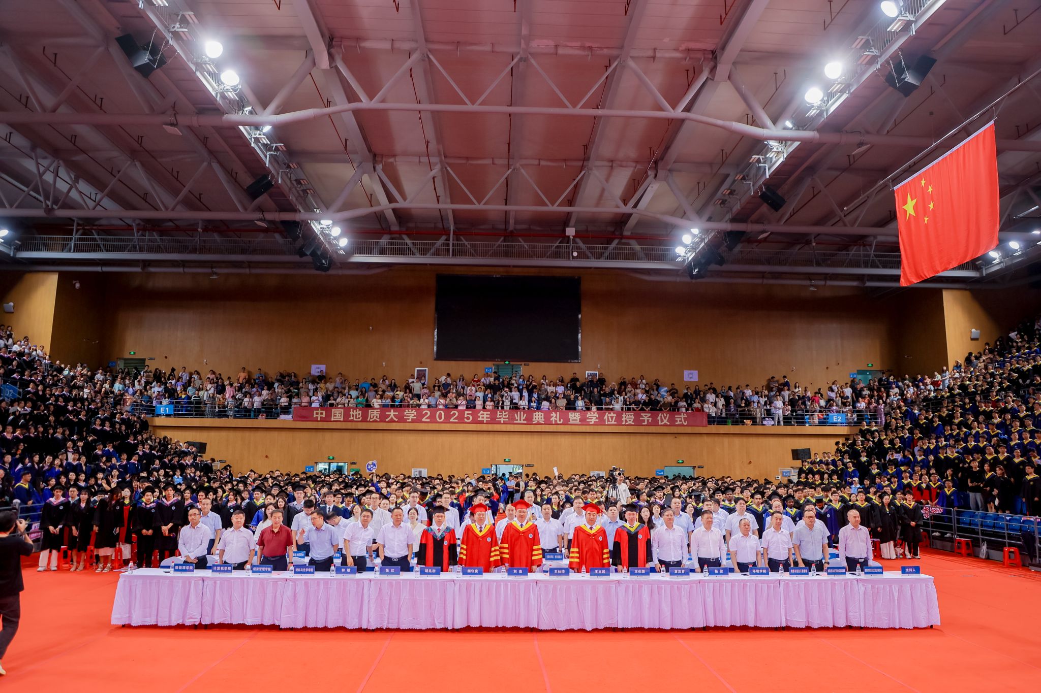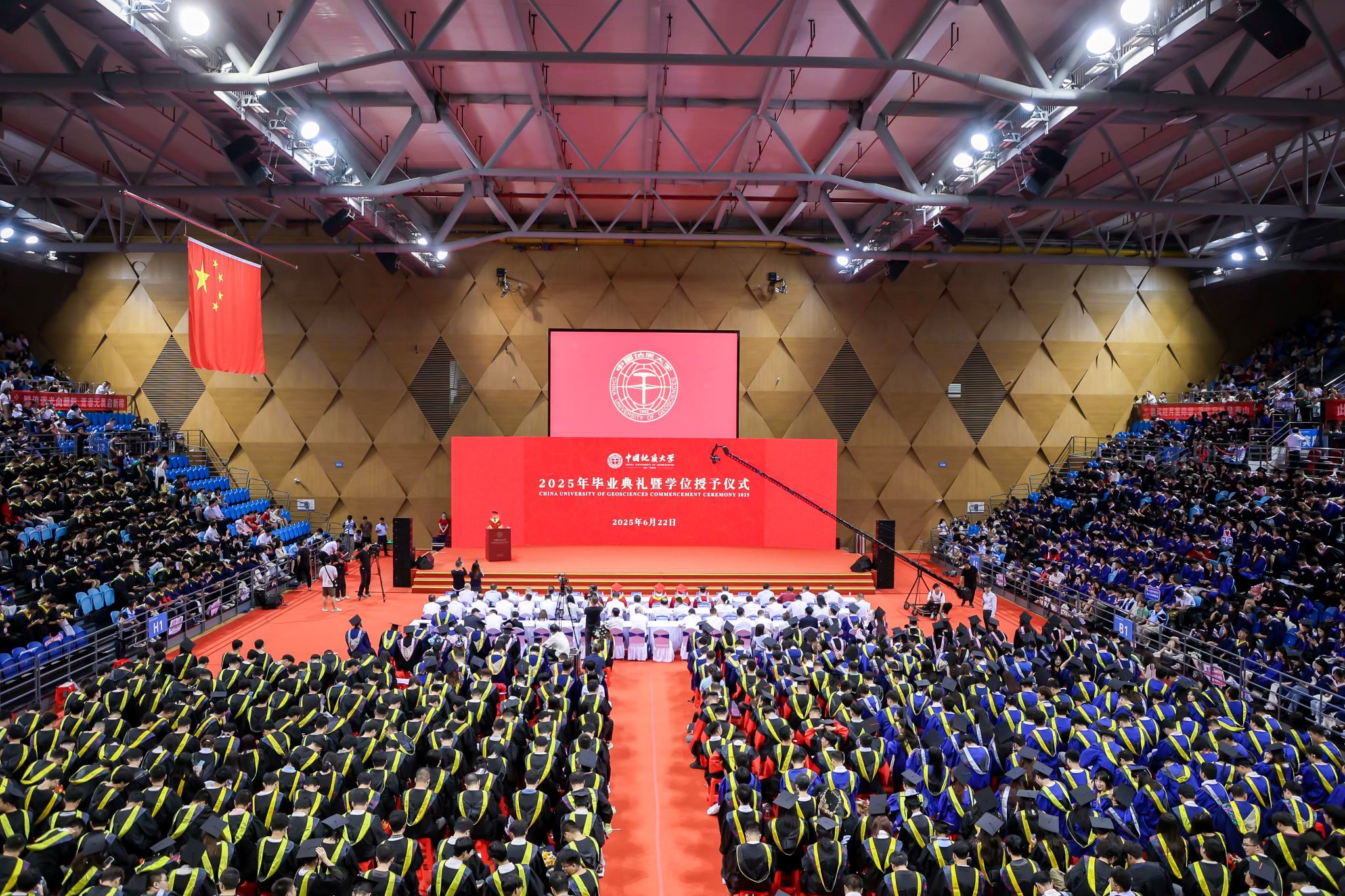 地大新闻网讯(记者 孙彦钦 焦思勤)6月22日,我校2025年毕业典礼暨学位授予仪式以线上线下相结合的方式,在南望山、未来城两校区同步举行。校领导刘杰、李建威、王林清、唐忠阳、章军锋、胡守庚、王文起,党委常委、组织部部长陈文武,各教学与科研机构、管理与服务机构负责人,教师代表,校友代表,2025届毕业生参加毕业典礼。