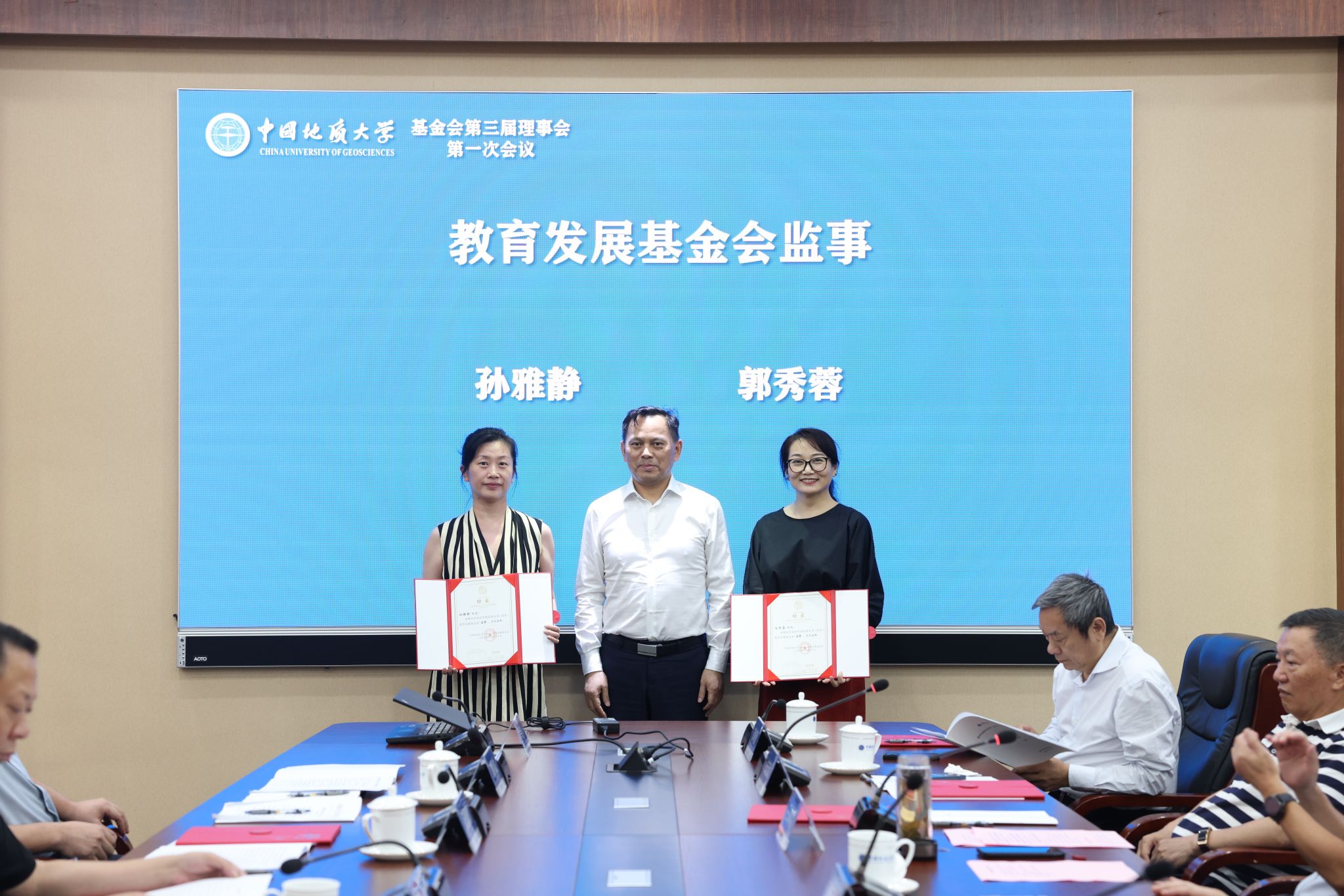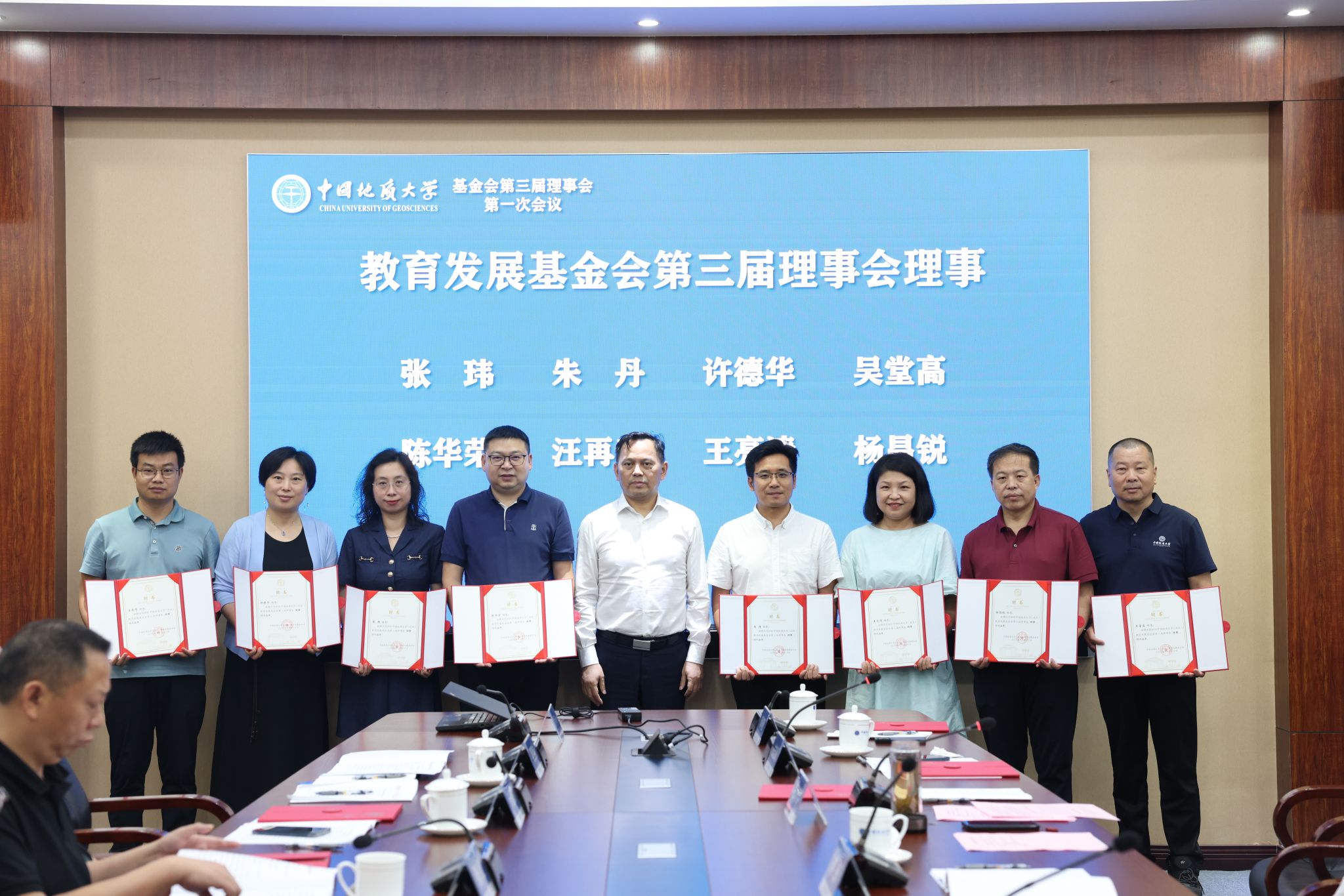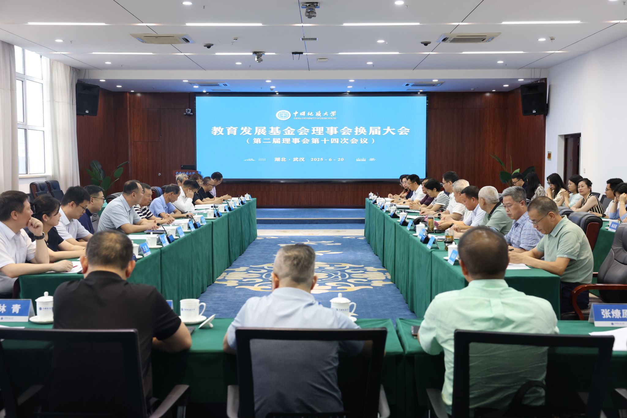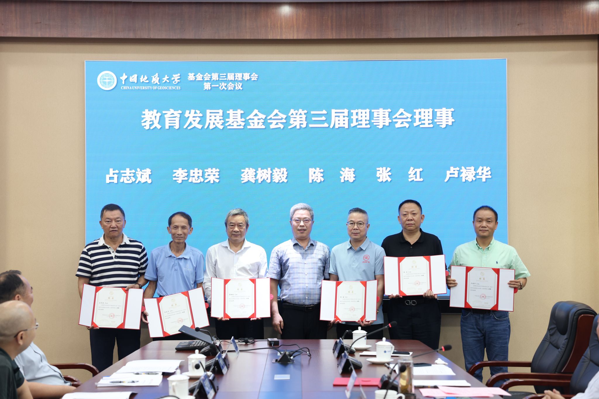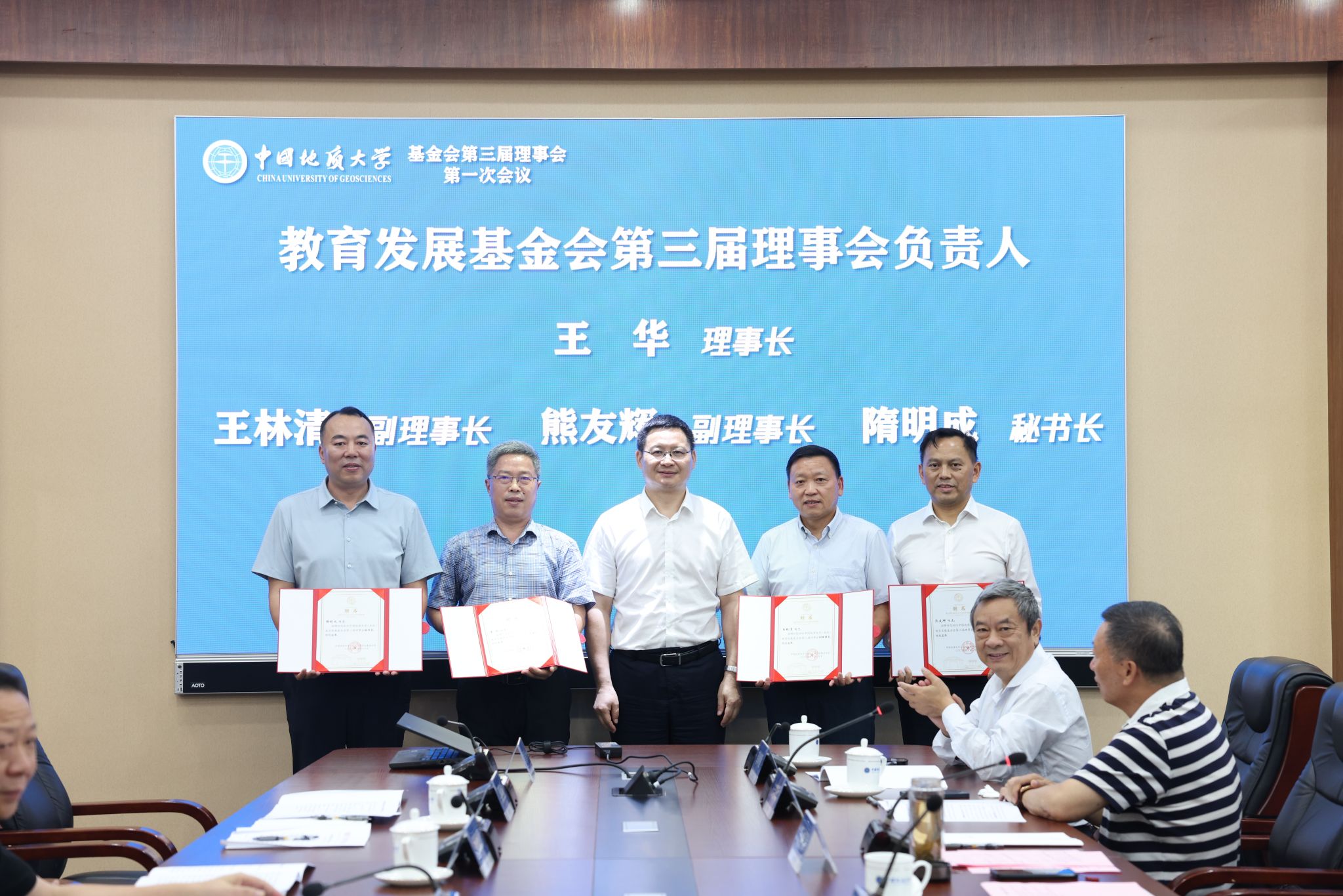 地大新闻网讯 (通讯员 袁晗 袁潇 摄影 杨小樱)6月20日,我校教育发展基金会(以下简称“基金会”)换届大会暨第三届理事会第一次会议举行。校党委书记刘杰、党委副书记王林清,原副校长、资源学院教授王华,基金会第二届、第三届理事会成员、基金会监事参加会议。王林清主持会议。