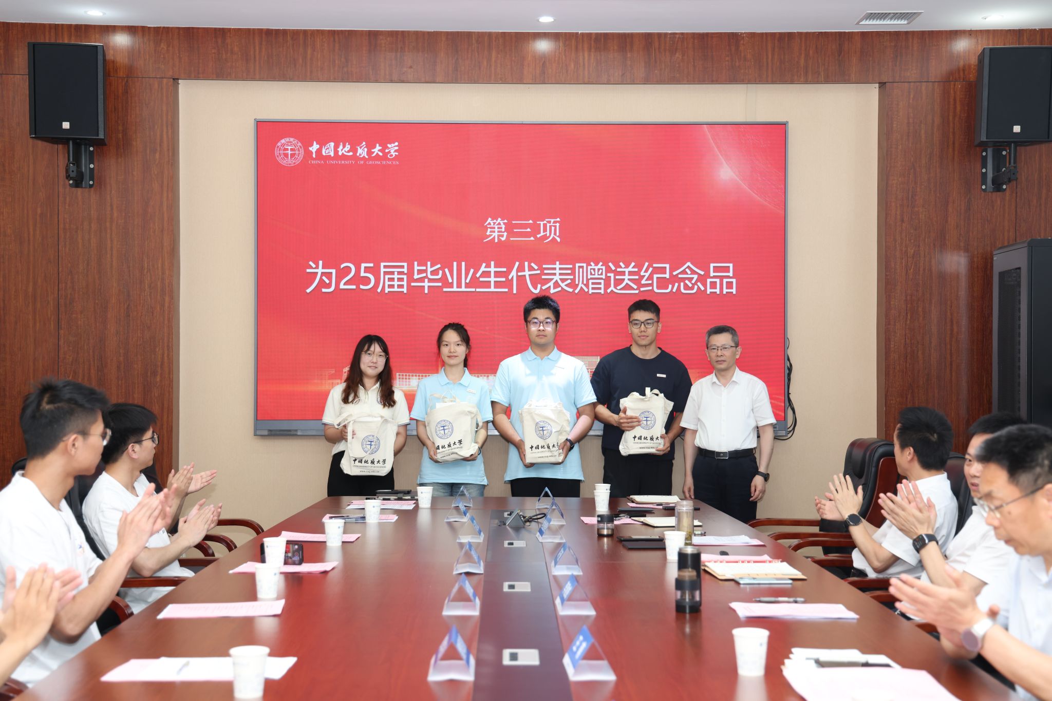 胡守庚祝贺同学们顺利毕业,他希望同学们继续发扬校训精神,传承地大品格,坚持专业立志,做到干一行爱一行,专一行精一行。他勉励大家在新的工作岗位上勇于担当。