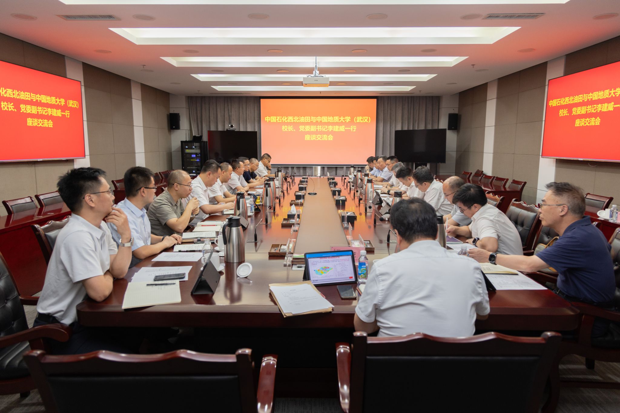 7月23日下午,李建威一行与中国石化西北石油局执行董事、党委书记王世洁,总经理、党委副书记云露等座谈交流。