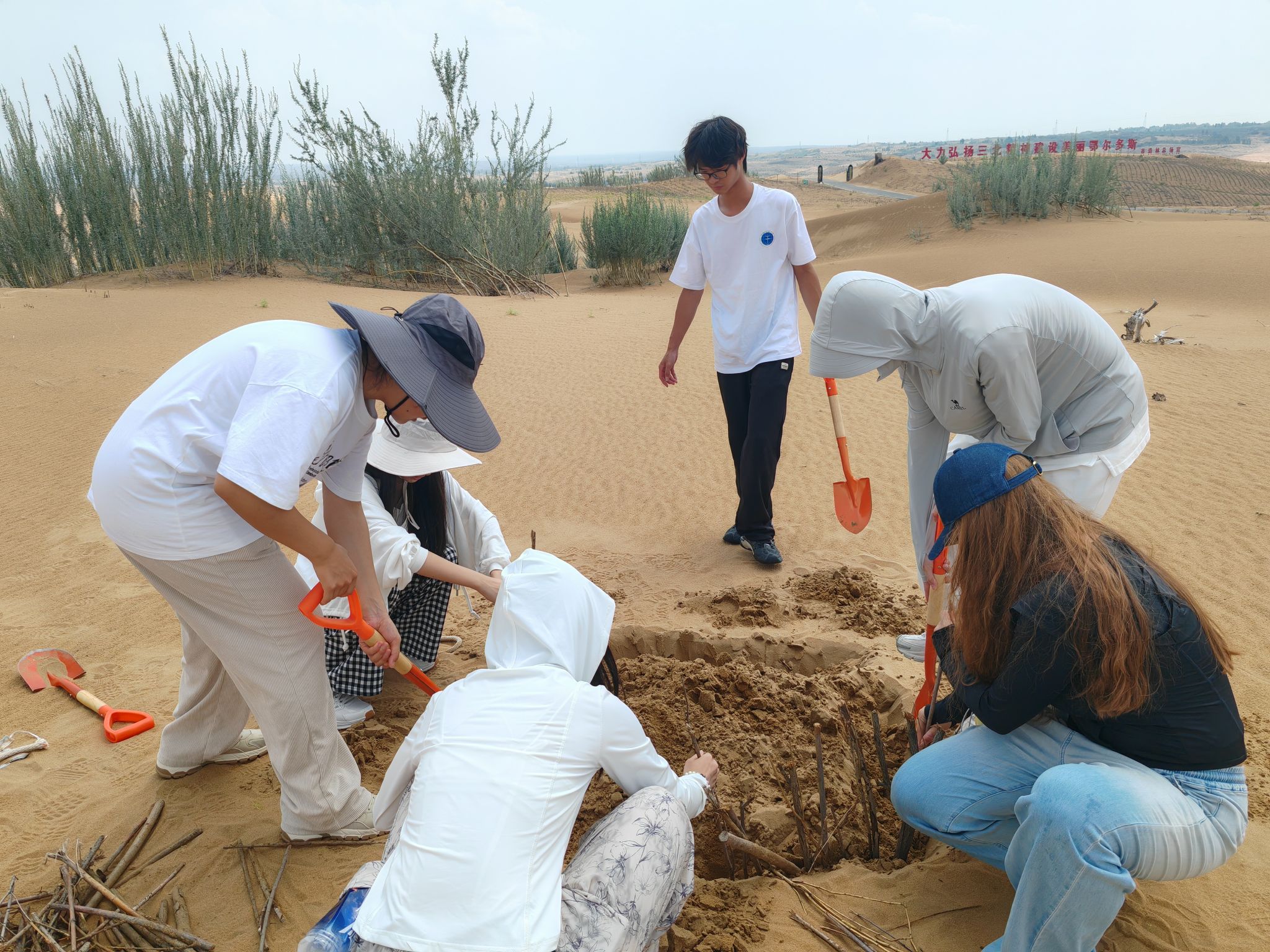 库布齐沙漠边缘,恩格贝生态治沙工程的成就令人惊叹。顽强的固沙植物诉说着一代代治沙人“缚黄龙”的艰辛与执着。“原来‘绿水青山就是金山银山’,是这样一草一木种出来的。”队员朱佳宇在笔记本上写到。
