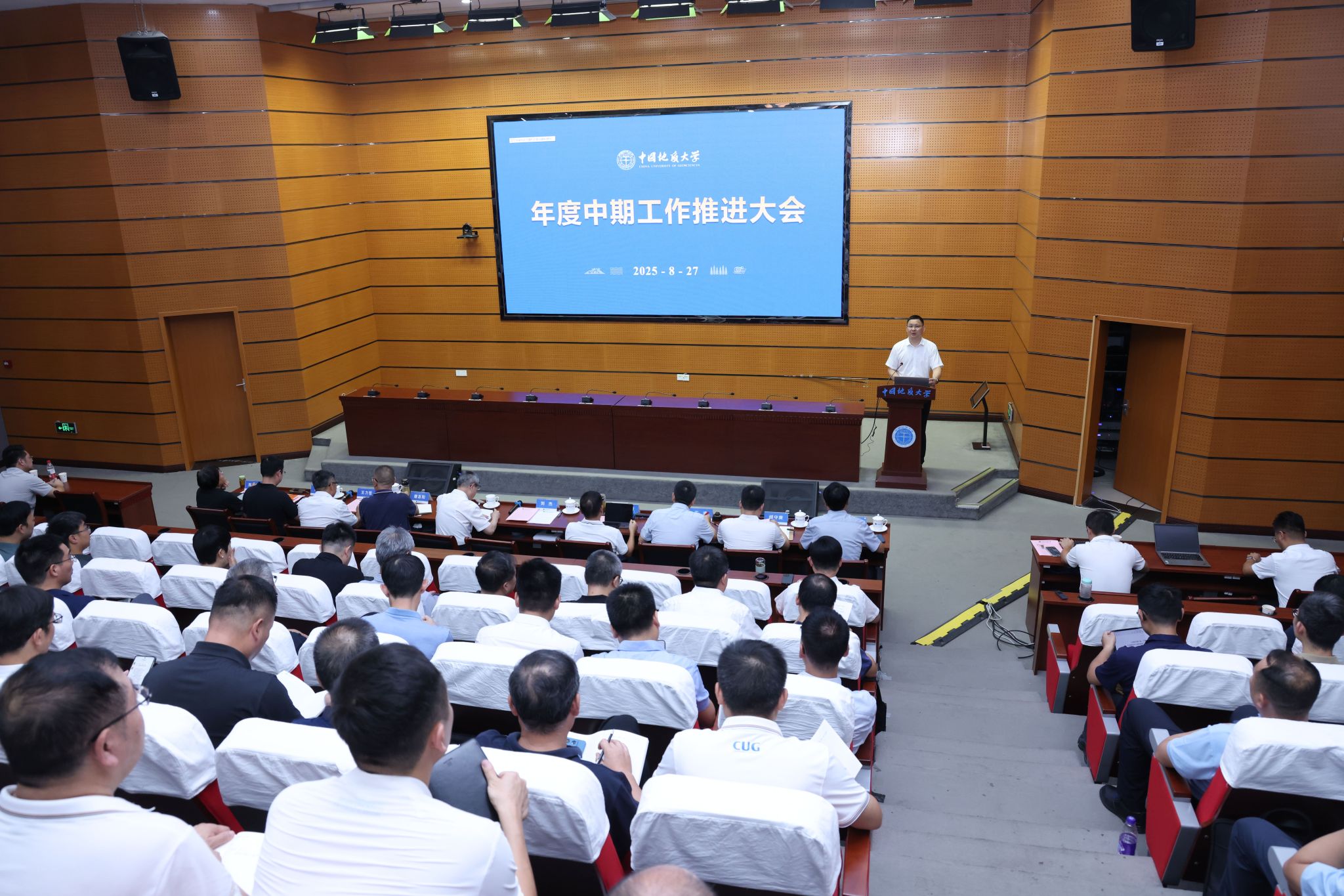 地大新闻网讯(记者 李锐欣)8月27日,我校召开年度中期工作推进大会。校党委书记刘杰主持会议,校长李建威作工作部署,校领导、党委常委、校长助理及全体中层领导干部参会。