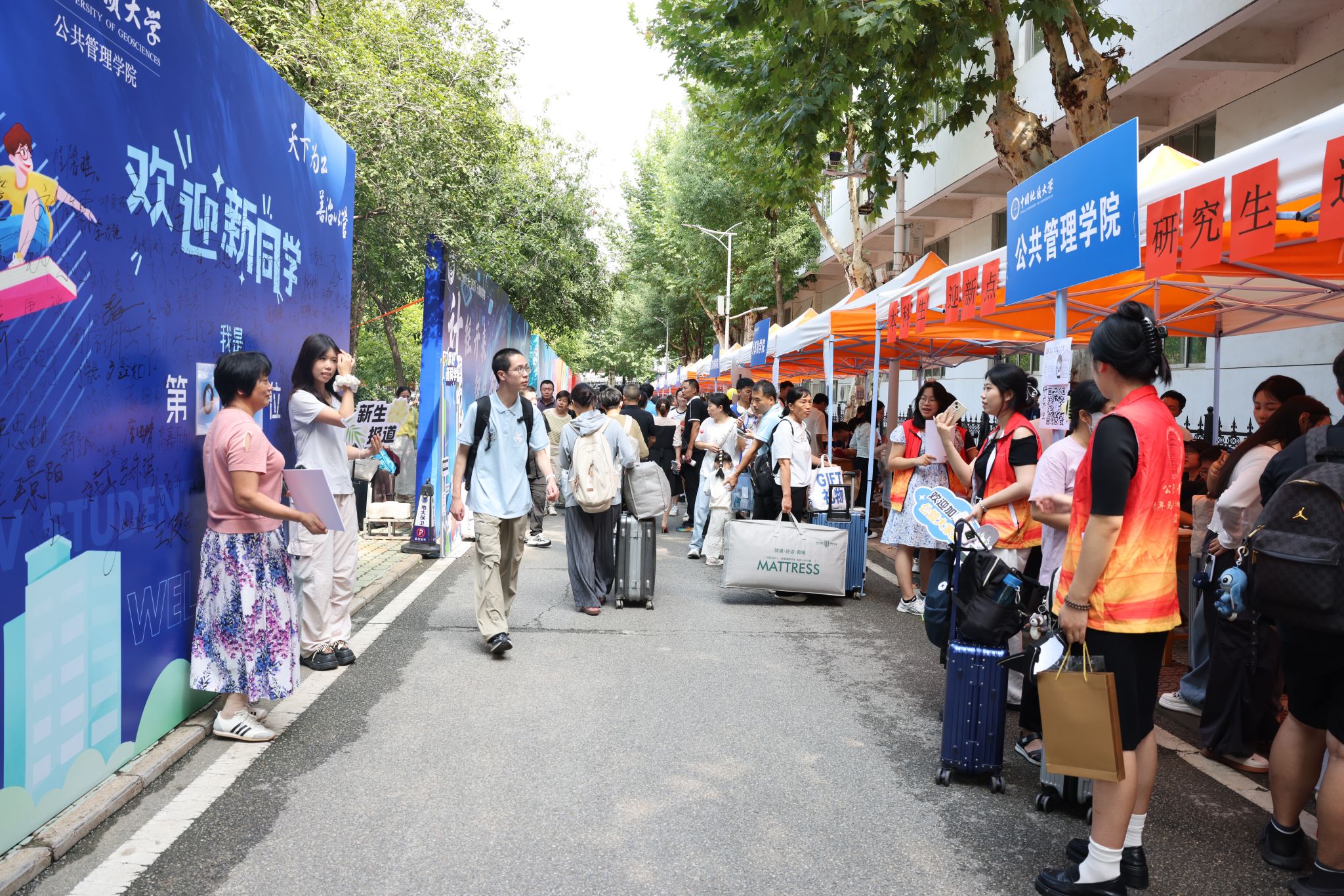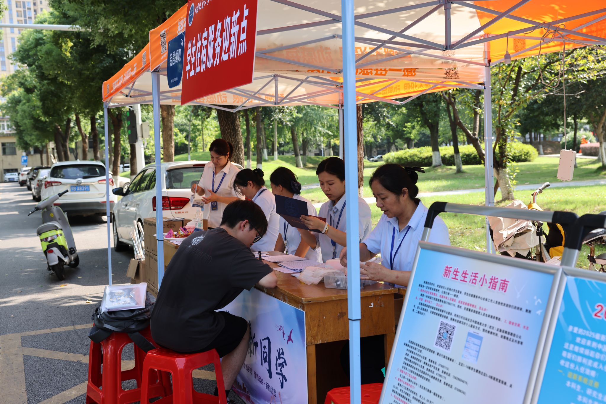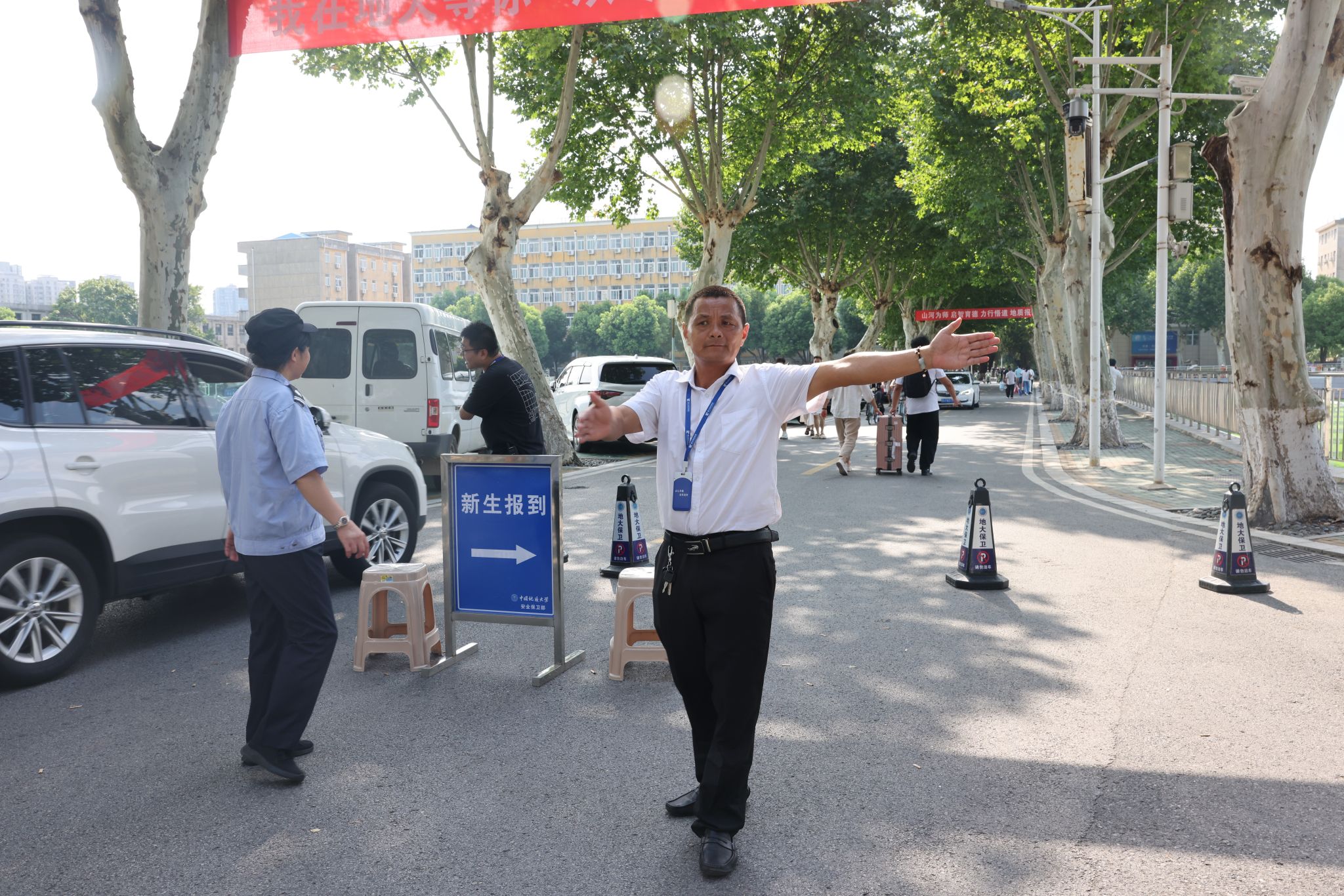 校园里,学生志愿者、后勤、保卫工作人员,为新生们提供周到服务。大家不辞辛苦指挥交通、搬运行李,引导新生办入学手续,带着大家熟悉校园。他们是最可靠的“导航标”、是化解燥热的“清凉驿站”、是新生故事的“第一页”。