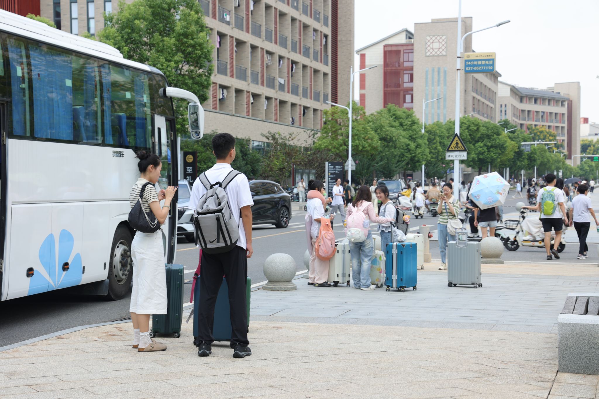 来到迎新点,师长与志愿者热情迎接,摆渡车在校园内不停往返。报到、录入信息、入住宿舍……地大校园即将见证你的无限可能。