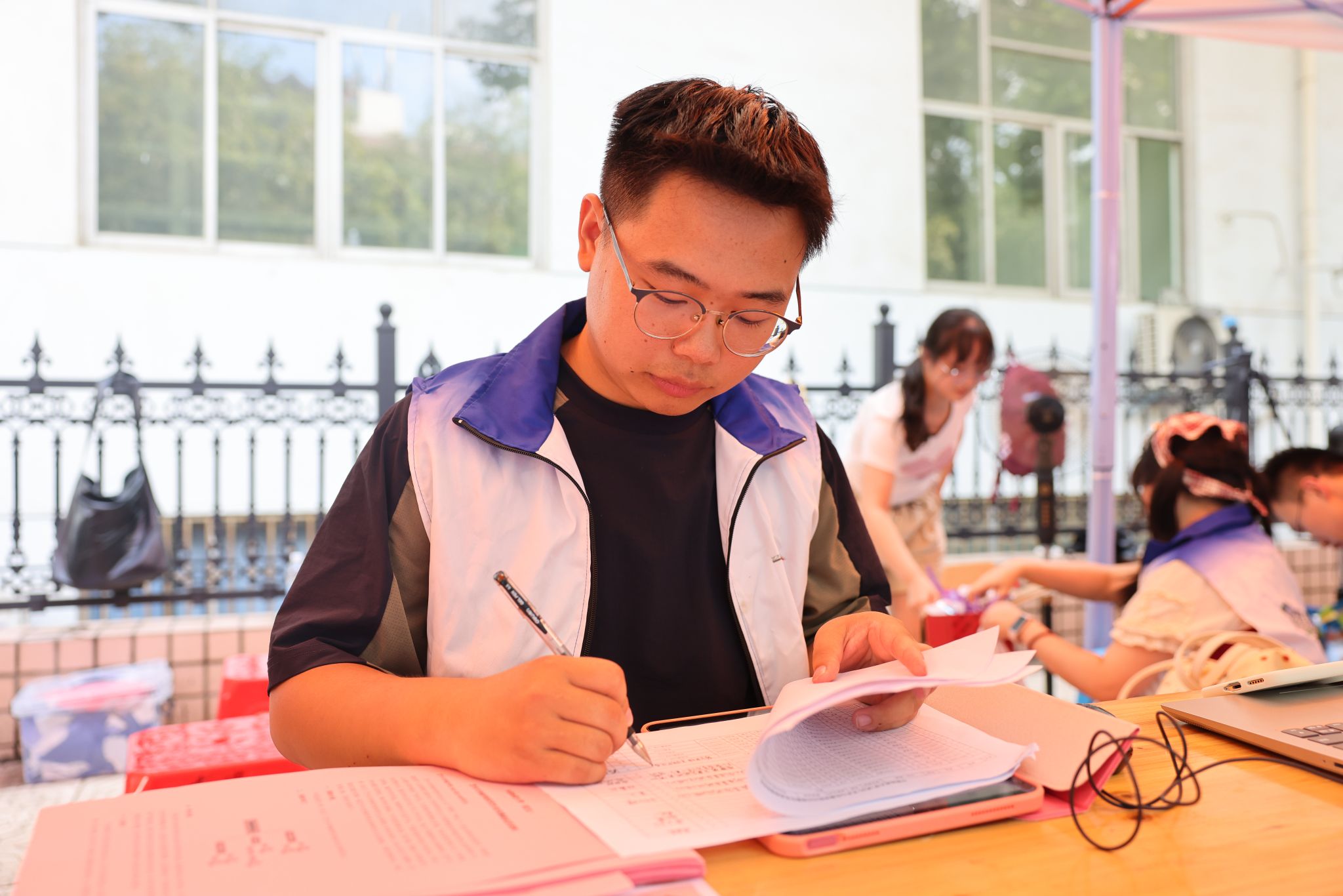 艺术与传媒学院交互设计专业的研二学生万子炎,负责数据录入等流程的新生报到工作。因为热爱摄影,去年还是研一新生的他也曾在迎新现场负责拍摄工作。“虽然身份转变了,但不变的是志愿服务的初心。看到新同学怀着愉悦的心情来报到,校园也增添了更多的活力,工作也更加有干劲。”