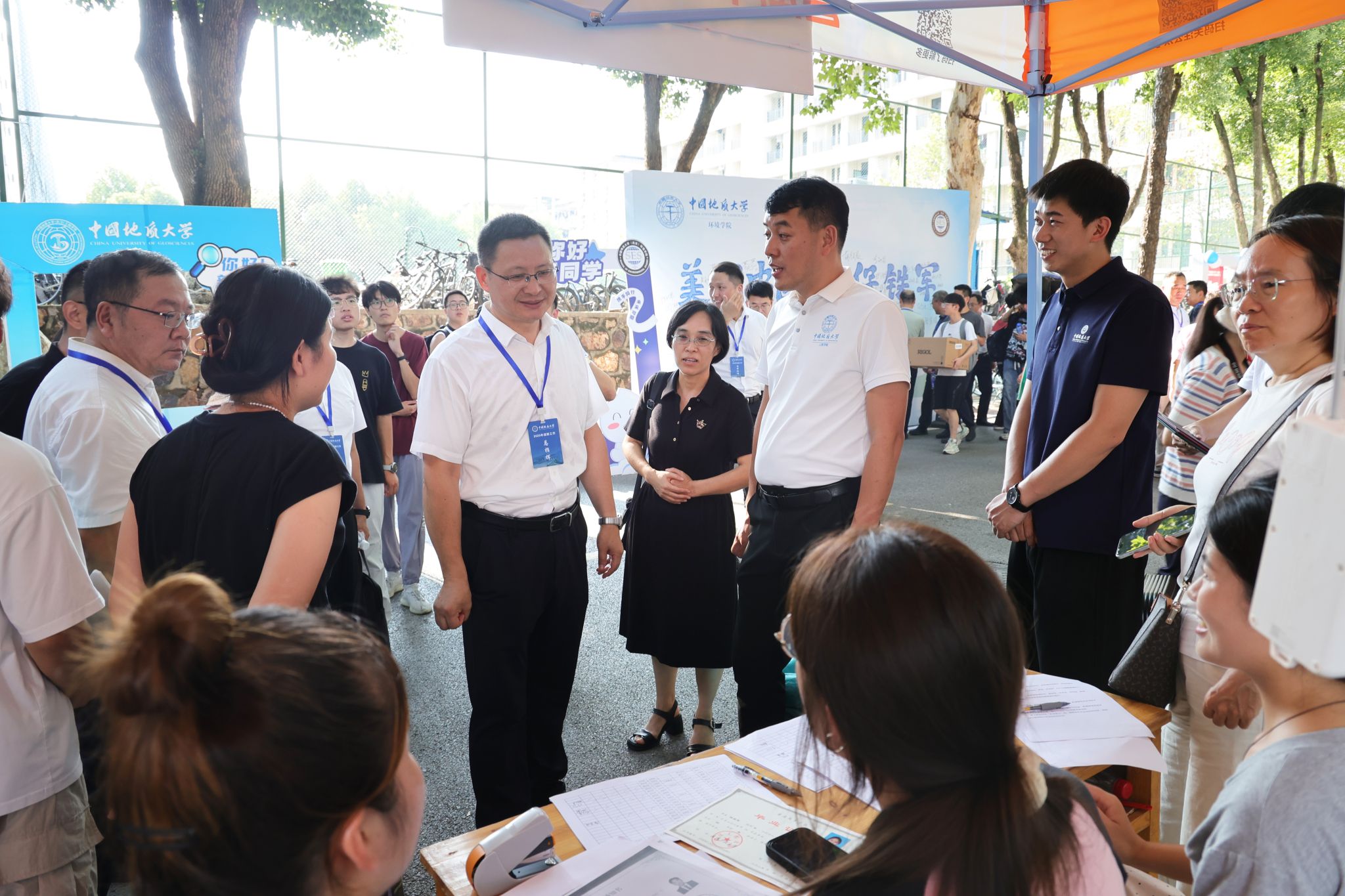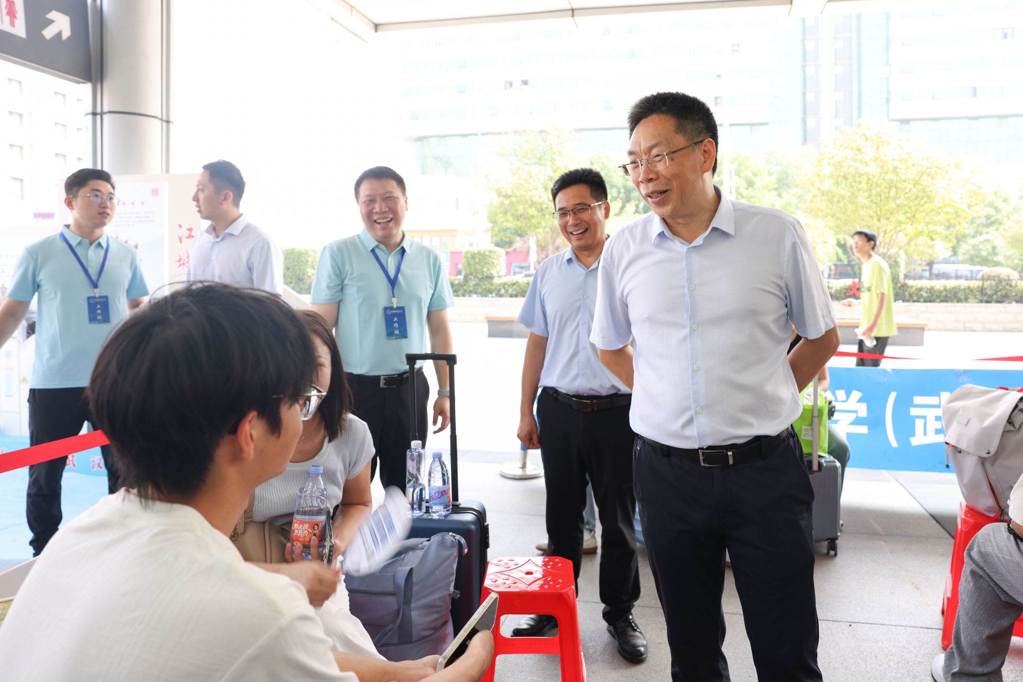 9月1日下午、9月2日,校领导刘杰、李建威、王林清、唐忠阳、王甫、王文起,党委常委、组织部部长陈文武,校长助理蒋少涌,先后前往南望山校区和未来城校区,实地查看迎新工作进展,并走进新生宿舍,与学生和家长进行交流。他们关切地询问同学们饮食是否习惯、住宿是否舒适,并仔细了解大家入学后的适应情况和个人需求。他们代表学校欢迎新生们,表示学校将全力保障同学们在校期间的学习与生活,为大家创造良好的成长环境。同时他们也勉励新生尽快融入校园,珍惜大学时光,学好专业、锻炼能力,在地大这片沃土上勇敢追梦、踏实成长。