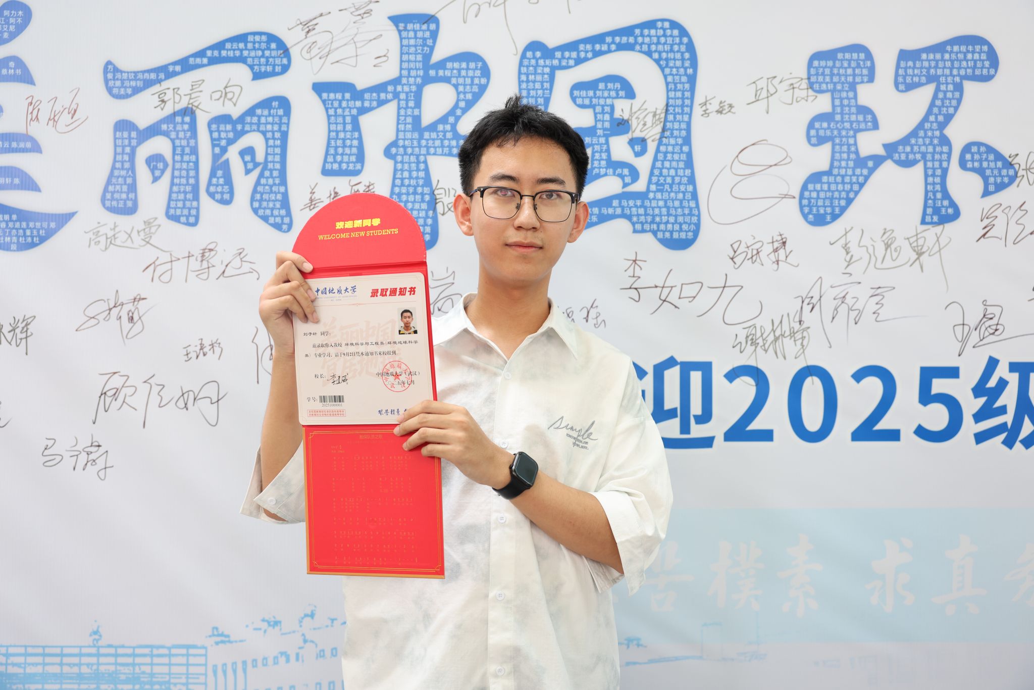 坐上离开家乡的列车,跨越1400公里,来自内蒙古的刘子轩来到了武汉这座烟火气十足的城市。他是环境学院环境科学与工程类专业的新生,学号是2025级的0001号。当得知他收到的是校长李建威亲笔签发的第一批录取通知书时,他感到非常惊喜。刘子轩说:“这对我而言意义重大,同时也更加激励我在校期间奋发学习,积极探索。”
