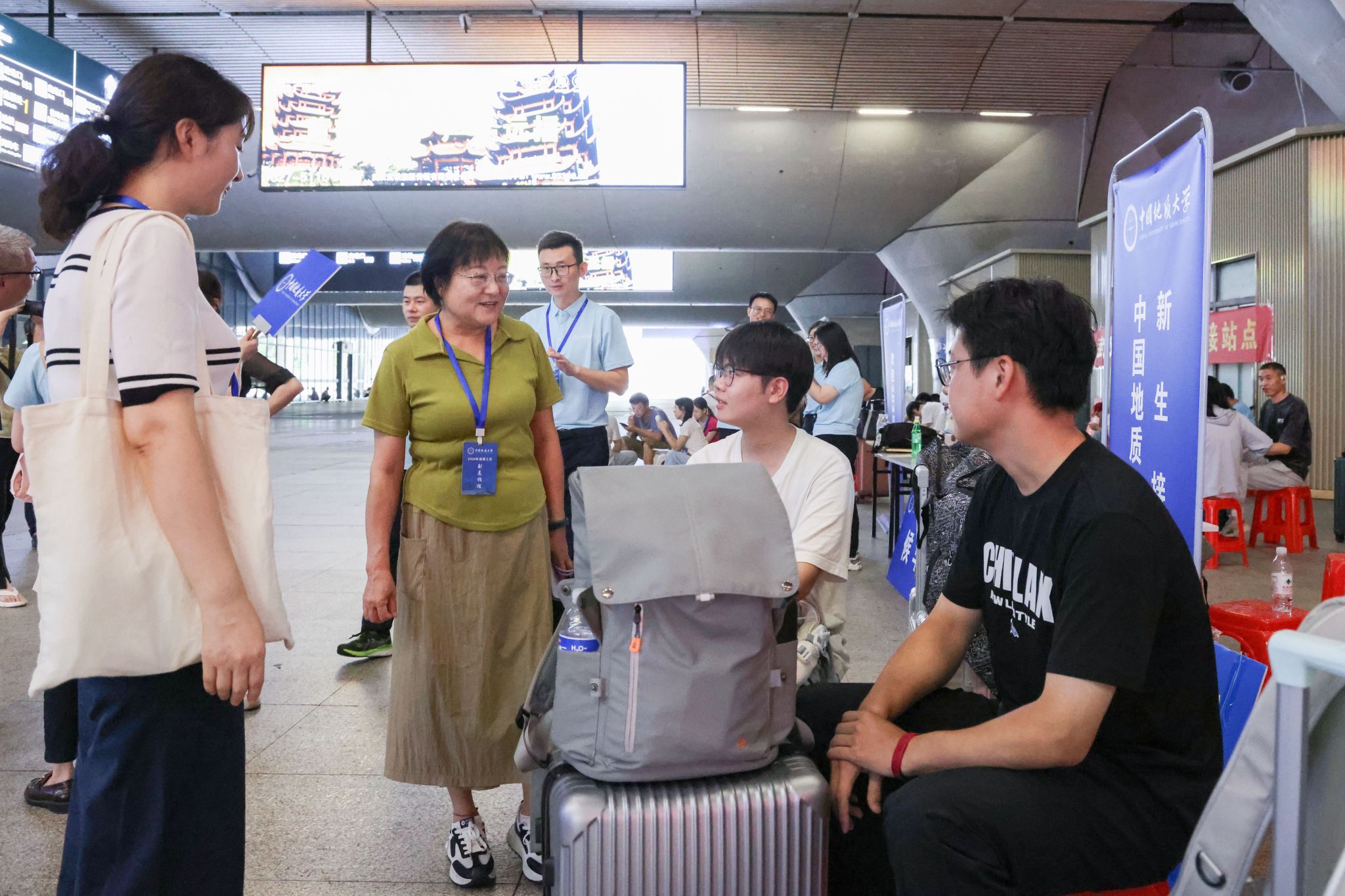 珠宝学院珠宝鉴定专业大二的本科生曹明灿,冒着烈日守候在新生接站点,为到站的新生和家长提供指引。“看到新生朝气蓬勃、充满好奇心的面孔,也回忆起来我初入校园的景象,当时也有很多热心的志愿者迎新。”曹明灿说,帮助他人,自己也获得了认同感和幸福感。