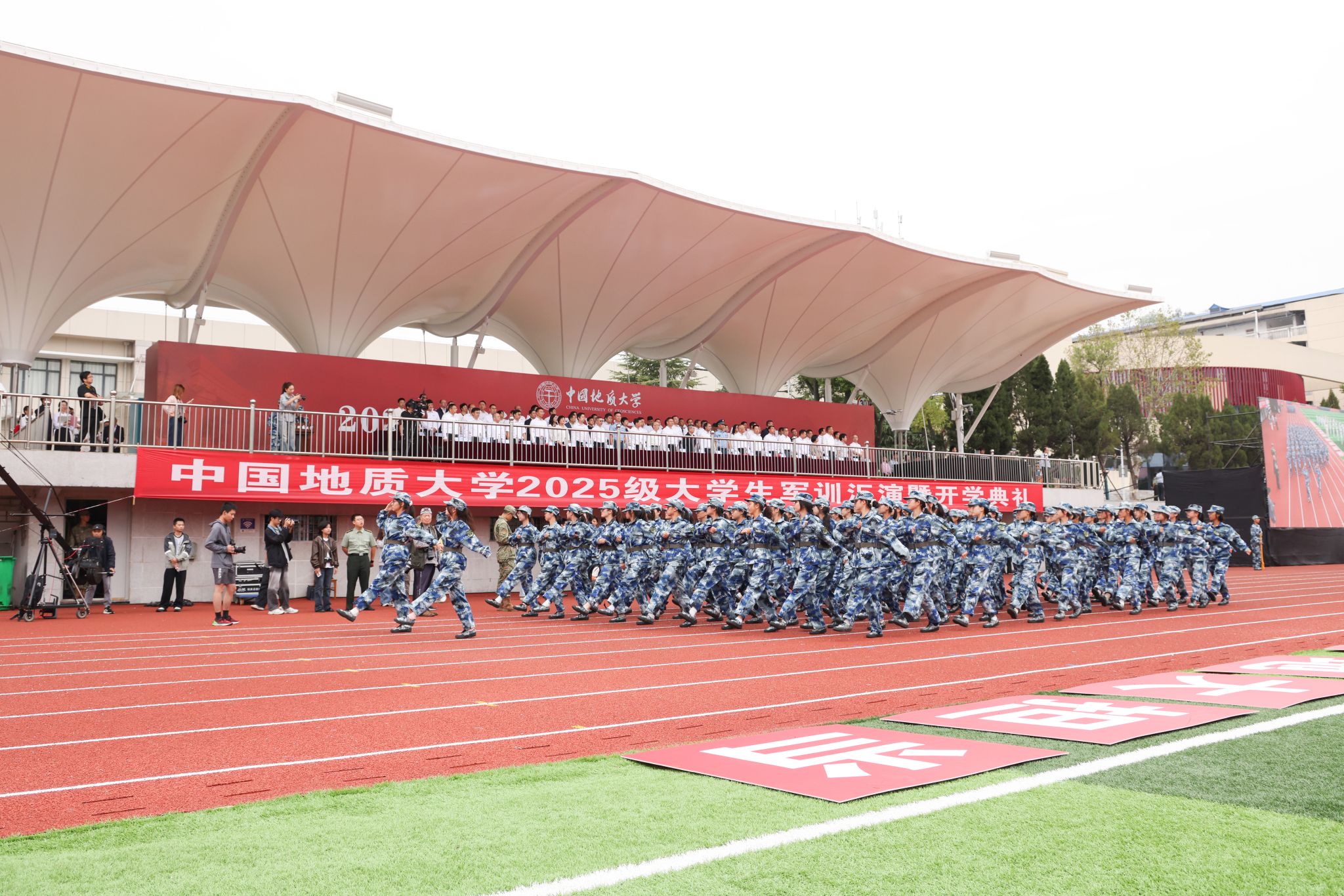 各学院新生组成的33个方阵斗志昂扬,以饱满的精神、严整的队形、嘹亮的口号,依次走过主席台前接受检阅,他们身姿挺拔如松、步伐整齐划一,展现了地大学子积极向上的青春风采。