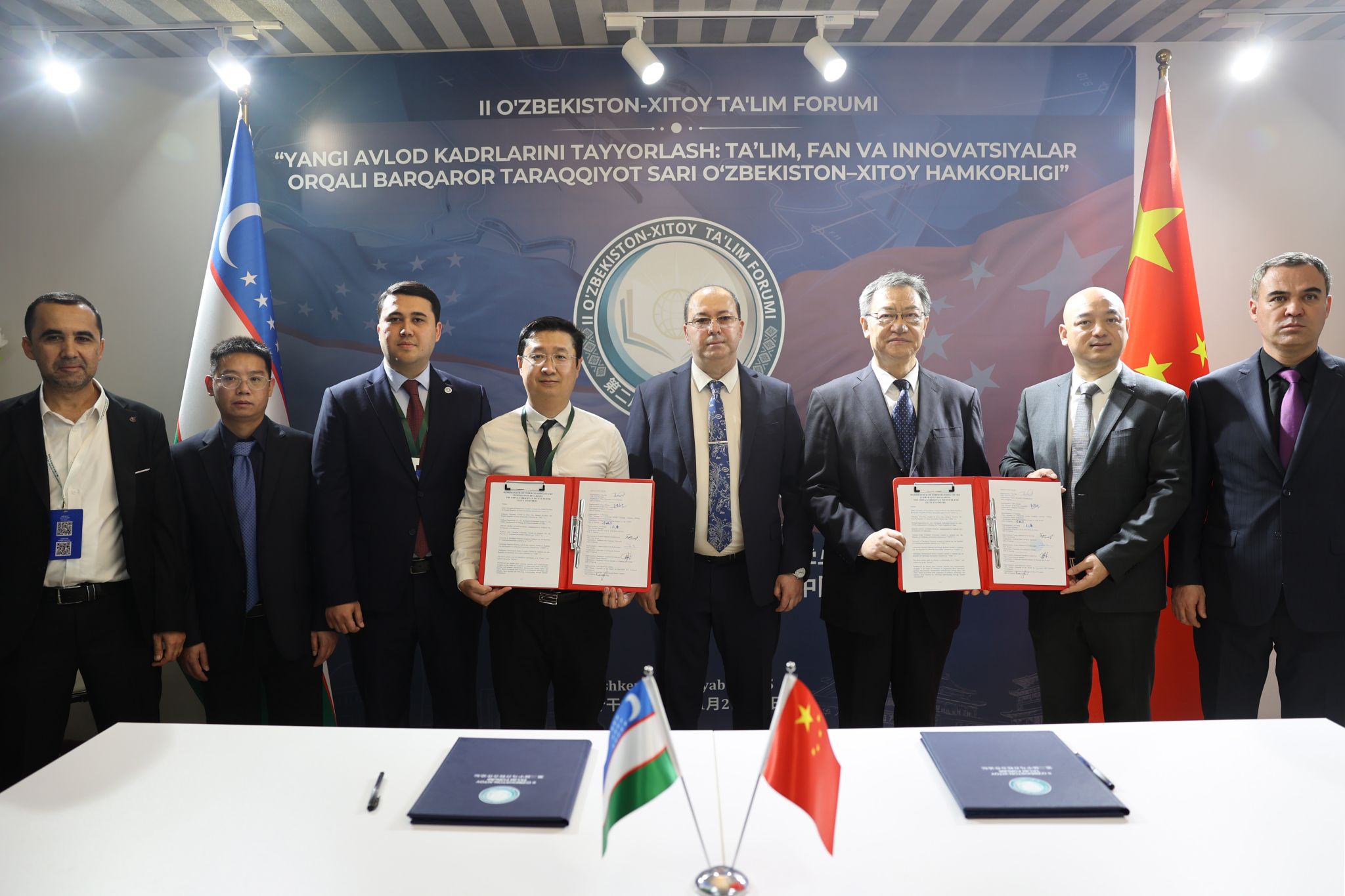 在怀进鹏和孔格拉特拜·沙里波夫的共同见证下,我校副校长夏帆、长安大学党委书记陈志坚、中核地质勘查集团有限公司驻乌兹别克斯坦项目部代表李晓平、中建国际乌兹别克斯坦有限公司总经理刘广、乌兹别克斯坦地质大学校长卡迪尔霍贾耶夫、塔什干国立交通大学第一副校长图拉耶夫、乌兹别克斯坦科技金属集团创新与技术发展委员会副主席阿比多夫、乌兹别克斯坦国家规划设计院常务副院长拉赫莫诺夫,共同签署“中国-乌兹别克斯坦卓越工程师学院”联合共建备忘录。该学院作为中乌两国在教育与科技合作领域的国家级重点项目,旨在打造辐射中亚地区的高层次工程人才培养与科技创新核心平台。