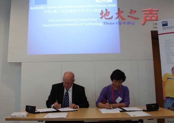 五、校党委副书记朱勤文代表学校与澳大利亚昆士兰科技大学副校长Mr. Scott Sheppard签订校际国际合作协议,并拟就学生互换、学术交流等双方感兴趣的领域开展合作与交流。(杜海坤摄)